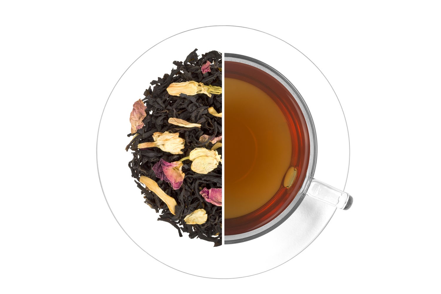 Pravý černý čaj (91 %), aroma, přírodní aroma, višně, květy pomerančovníku, jasmínu a růže.Může obsahovat stopy skořápkových plodů.