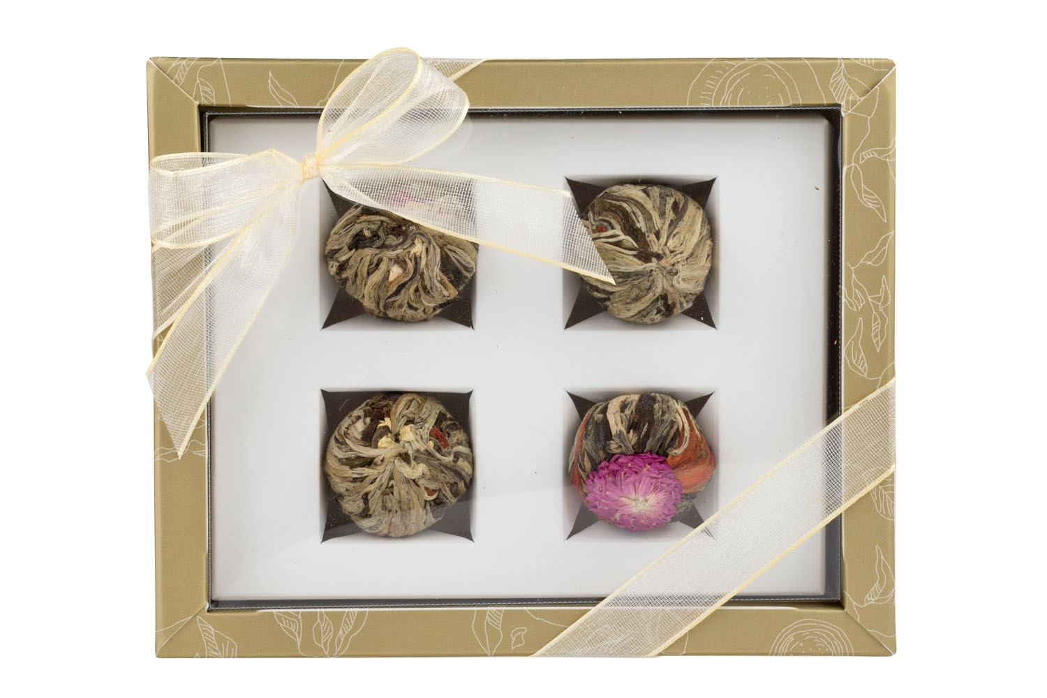 Objevte kouzlo čajového umění s kolekcí čtyř kvetoucích bílých čajů v elegantním zeleném balení. Po zalití se rozvinou do květů a nabídnou jemnou chuť s vůní jasmínu, lilie a laskavcovky – zážitek pro oči i chuť. Najdete v ní čaje Božská lilie, Posvátné květy, Rodinné štěstí a Vycházející slunce.