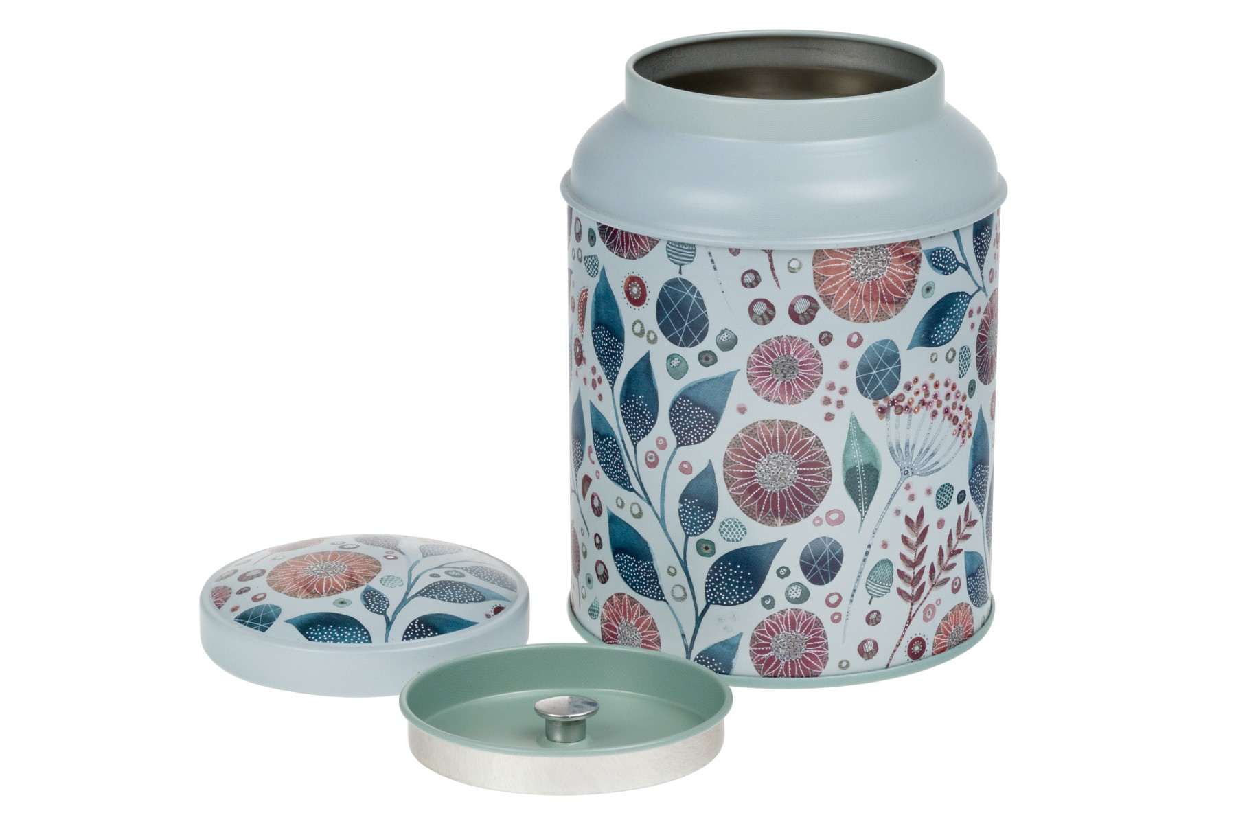 Elegantní plechovka v přírodních tónech se stylovým květinovým vzorem. Vnitřní víčko chrání před vlhkostí i ztrátou vůně. Ideální na uskladnění až 150 g čaje.Rozměry: 75 × 117 mm.
