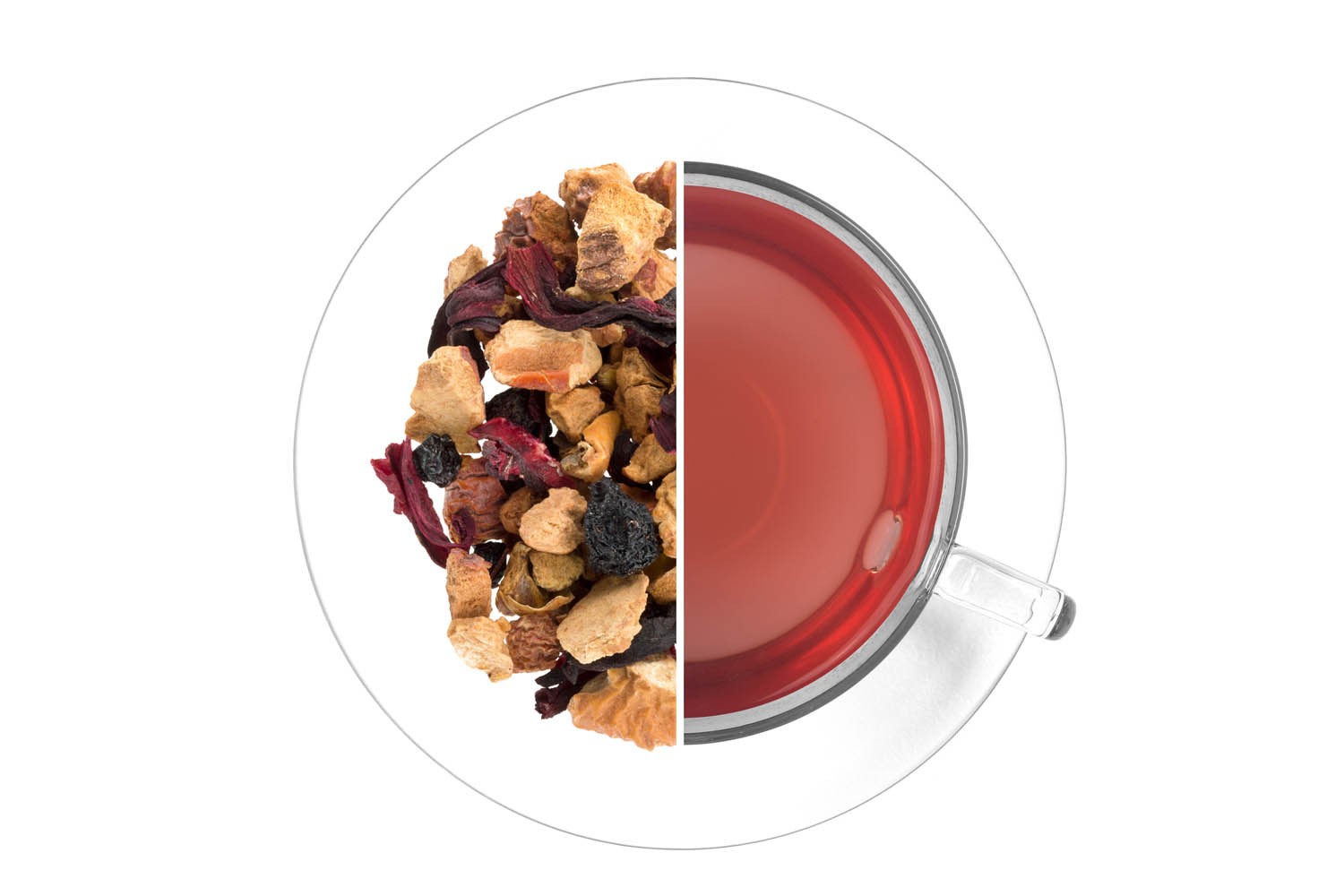 BIO jablka, BIO aronie plod (14,3 %), BIO ibišek květ (13,6 %), BIO bezinky a přírodní aroma. Může obsahovat stopy skořápkových plodů.