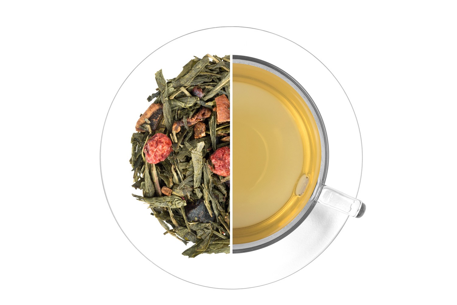 Zelený čaj (66,7 %), hrušky, ostružiny, borůvky (3,8 %), červený rybíz, skořice (3 %), přírodní aroma, aroma. Může obsahovat ořechy.