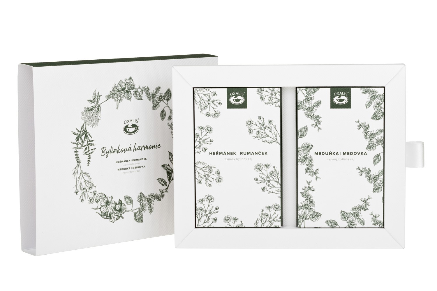 Dárek plný zdraví a hřejivé pohody, přesně to je Bylinková harmonie. Dárkové balení obsahuje heřmánek a meduňku, které příznivě působí na duševní zdraví, přispívají k pozitivní náladě, relaxaci a k přirozené obranyschopnosti organizmu.