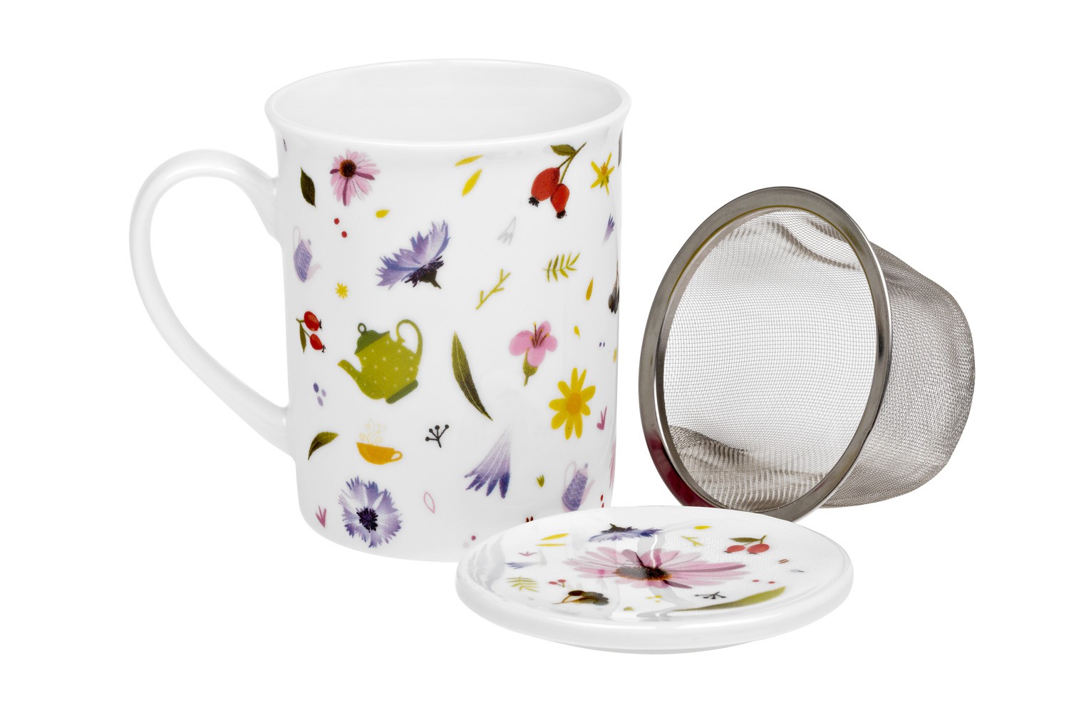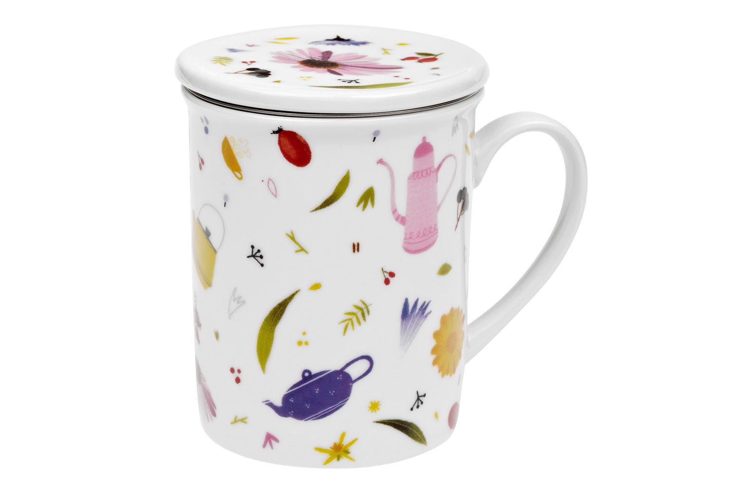 Česká louka 0,25 l – porc. hrnek s nerez sítkem a pokličkou
