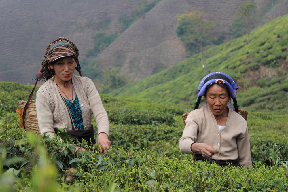 Šikovné sběračky v době sklizně ručně sbírají svěže zelené lístky. Pokud probíhá sběr tzv. na kvalitu, do sběrných ošatek se dostanou jen dva horní lístky a nejmladší výhonek (pupen). Nejlepší sběračky dokážou za den nasbírat až 20 kg čajových listů. Sesbírané lístky pak putují do čajové továrny, kde se nechají zavadnout.