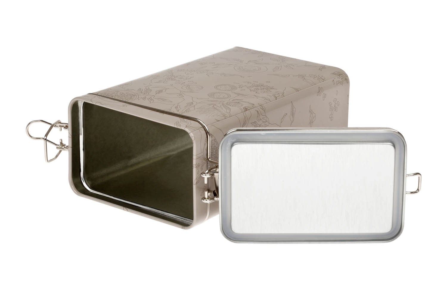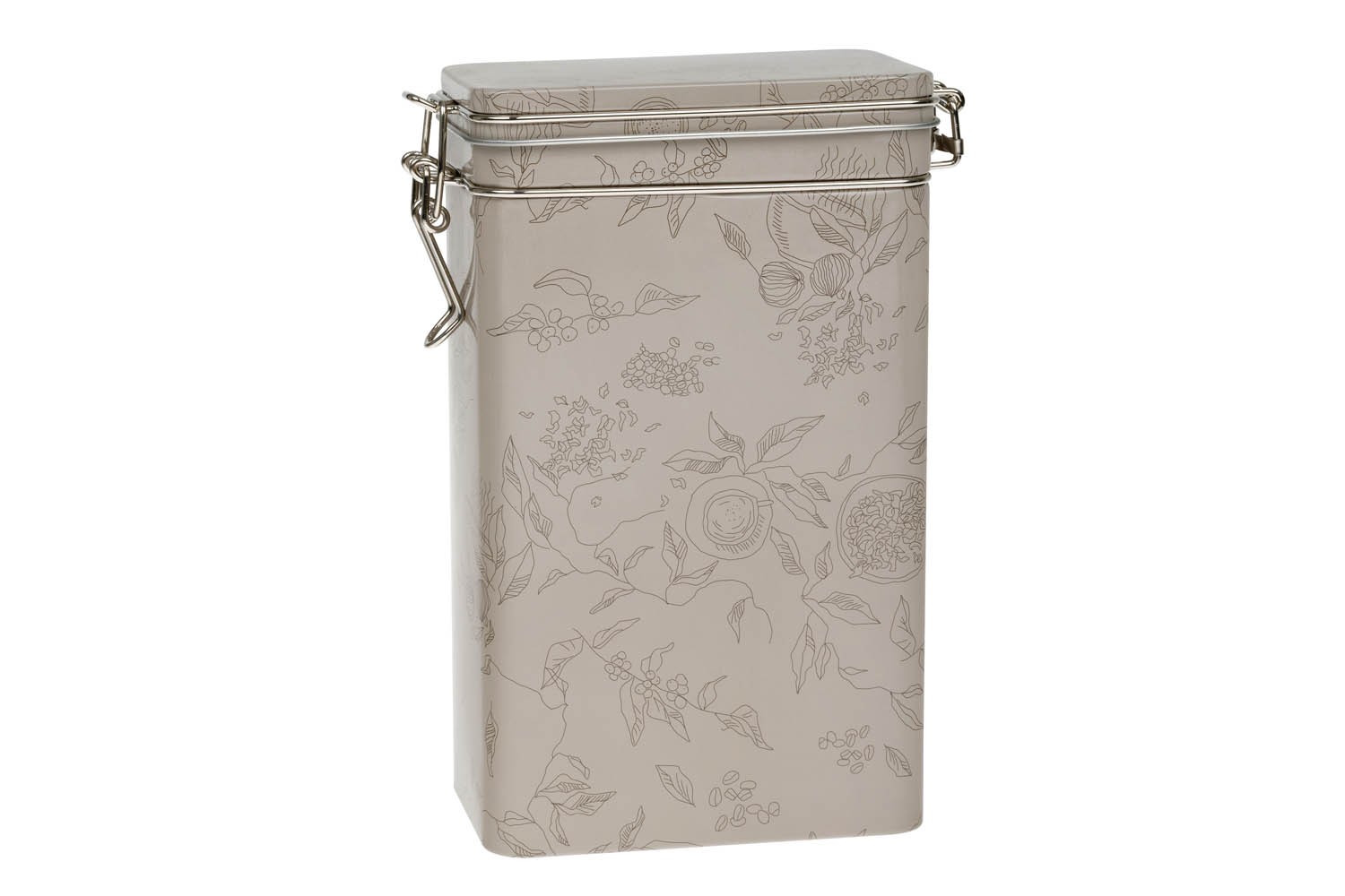 Plechová dóza na kávu, matná, hranatá s klipem. Objem 500 g.