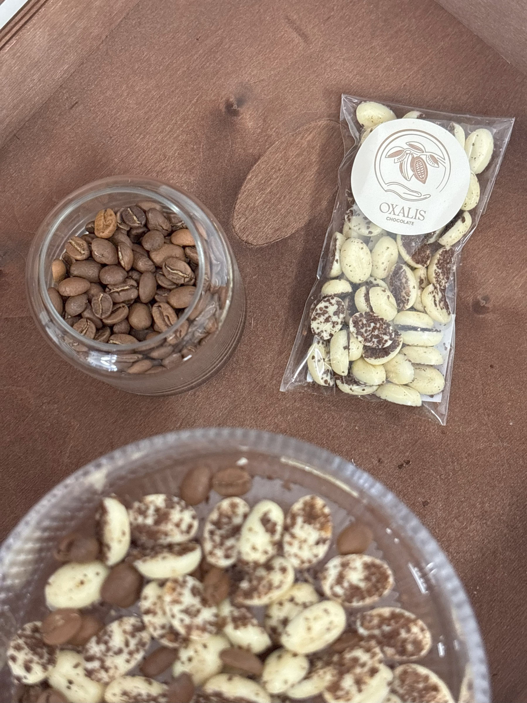 Jemná bílá čokoláda a křupavá kávová zrna – dokonalá kombinace, která potěší všechny milovníky sladkého i dobré kávy. Každé sousto ukrývá intenzivní chuť, která příjemně povzbudí a dodá energii. Ideální jako malá odměna během dne nebo stylový dárek.