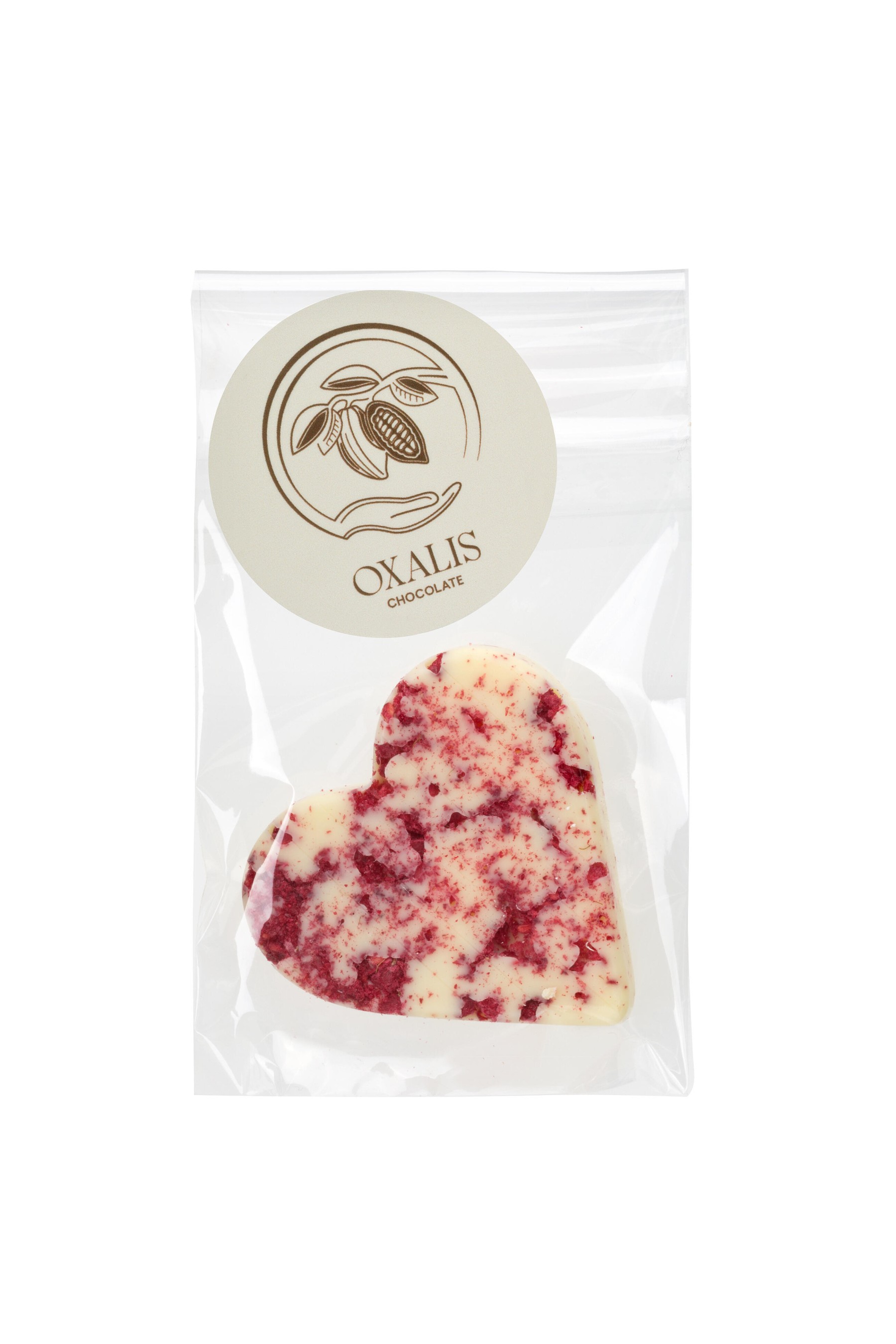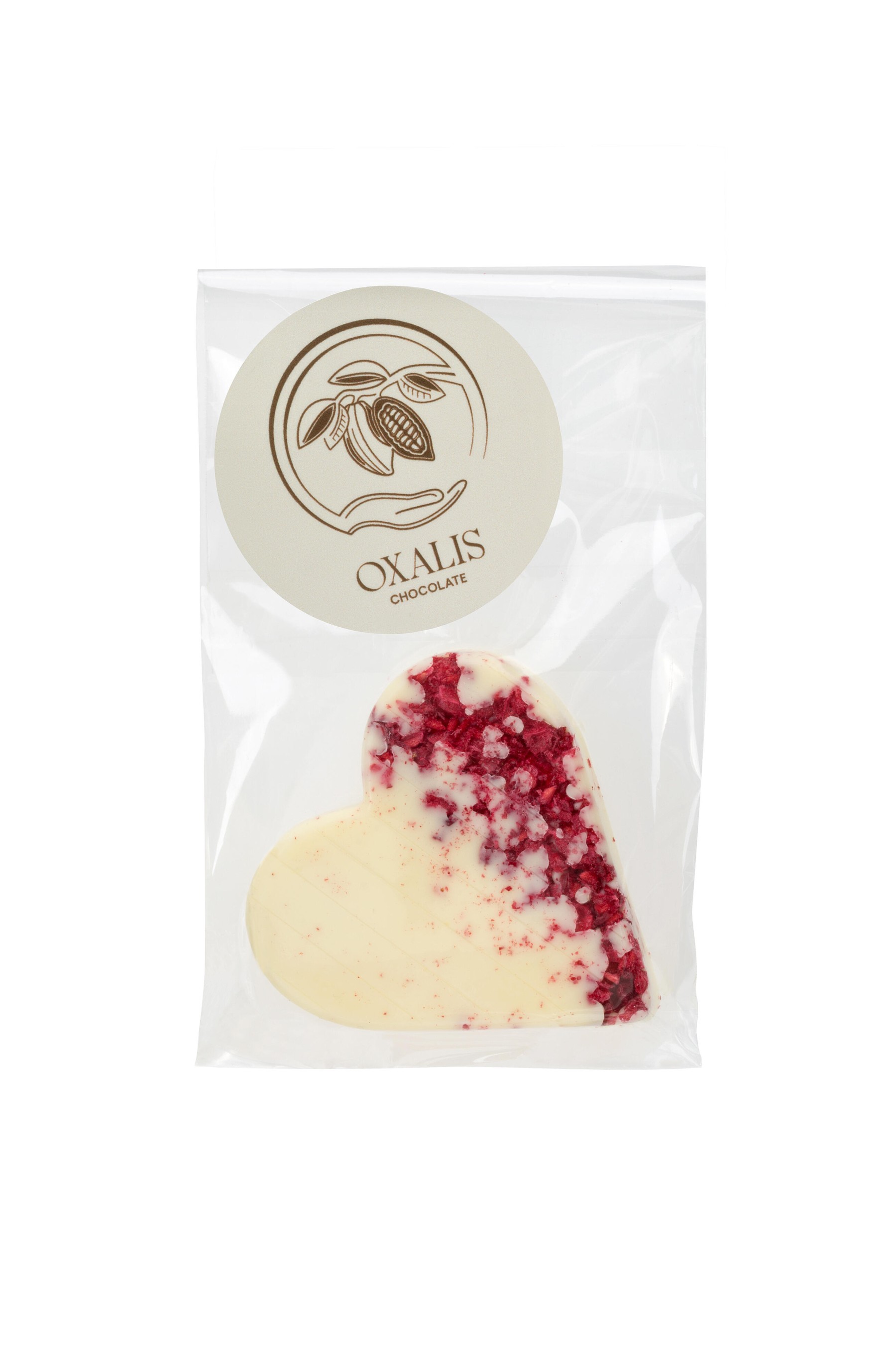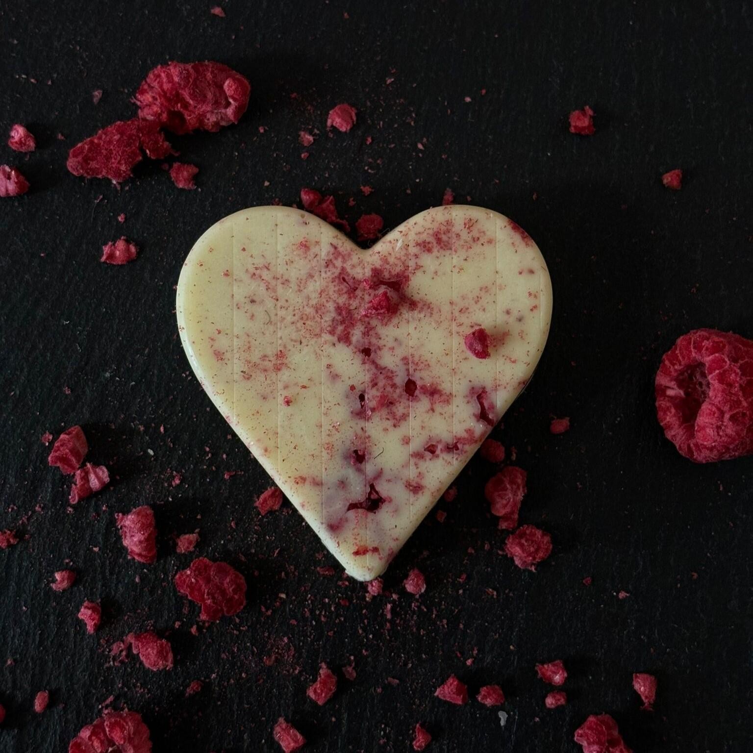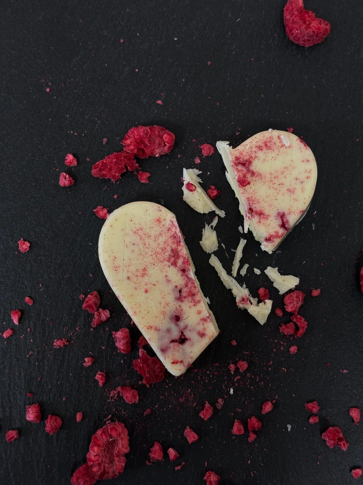 Jemná bílá čokoláda se rozplývá na jazyku a dokonale ladí s mrazem sušenými malinami, které dodávají osvěžující ovocnou chuť a lehkou kyselkavost. Spojení krémové sladkosti a svěžího ovoce tvoří dokonalou harmonii chutí, která potěší každého milovníka čokolády. Toto elegantní čokoládové srdce je ideálním dárkem pro každou příležitost - ať už chcete vyjádřit lásku, vděk nebo si dopřát sladkou chvilku jen pro sebe.