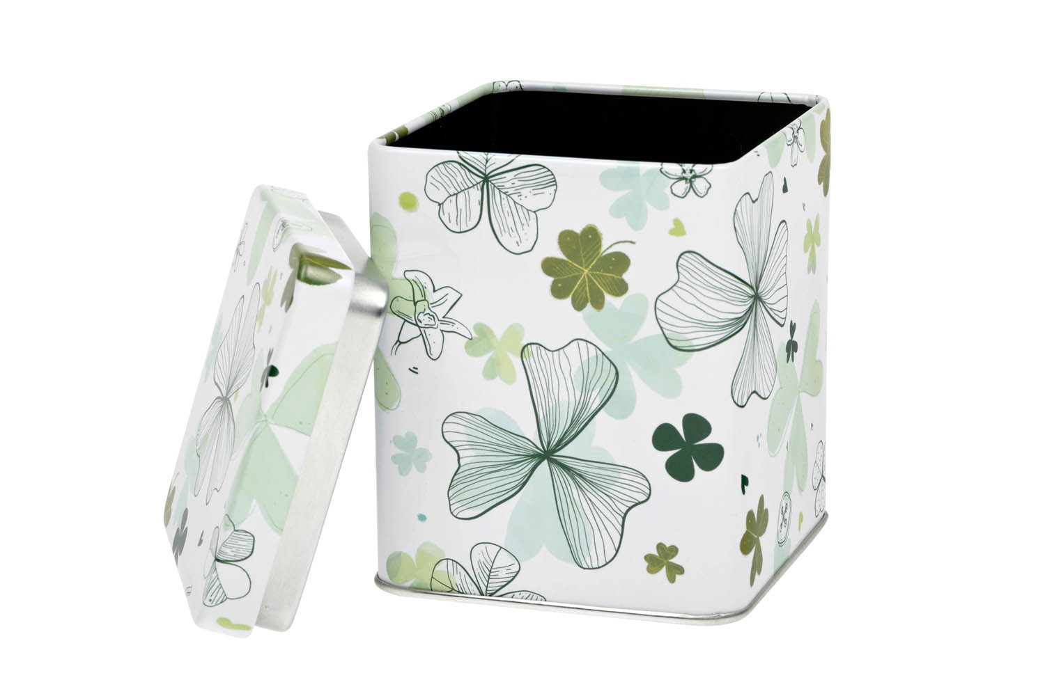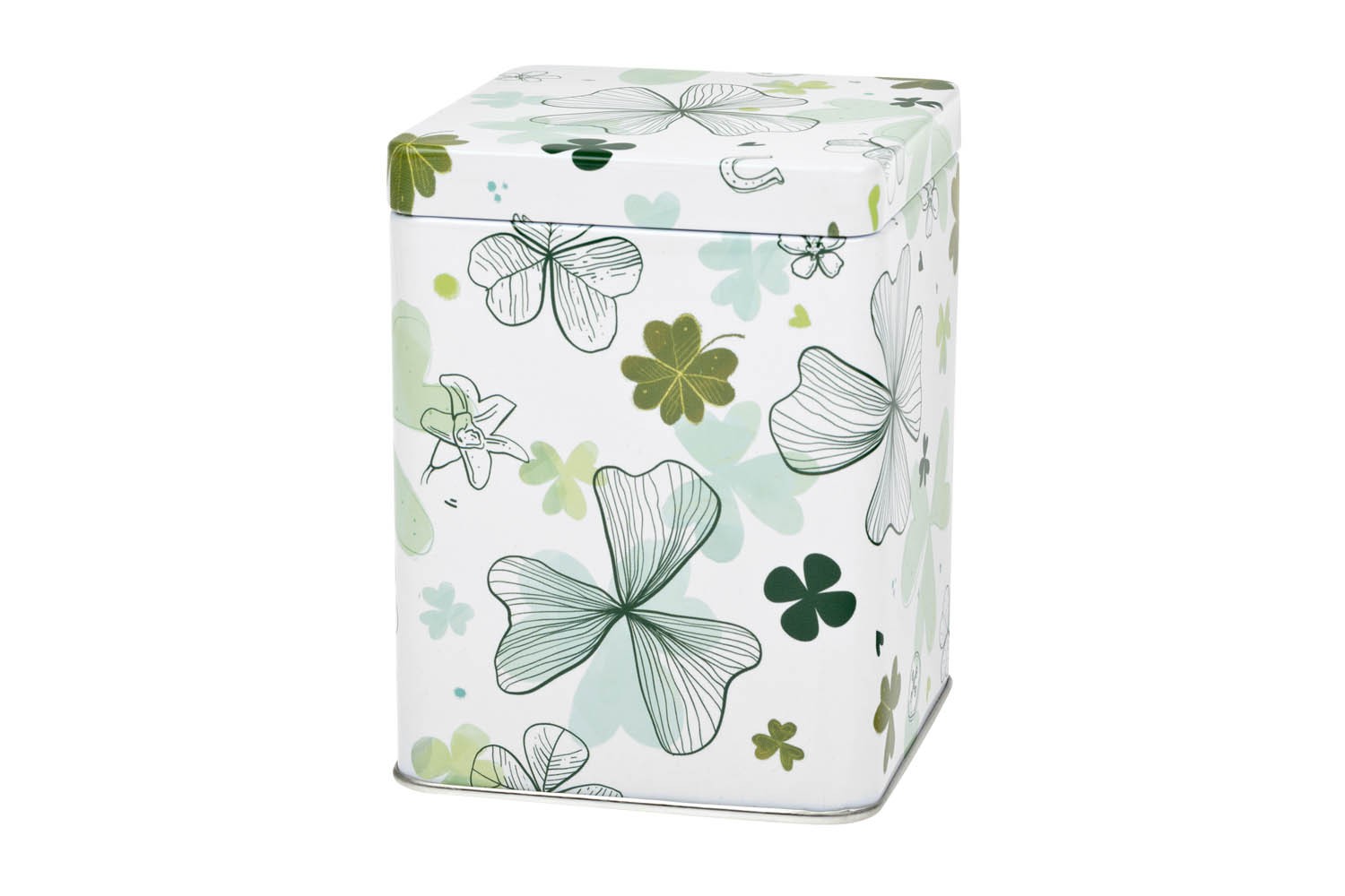 Plechová dóza na čaj. Objem 100 g. Rozměry 7,7 x 7,7 x 9,8 cm. Originální Oxalis motiv nakreslila mladá animátorka a výtvarnice Lucie Škodová