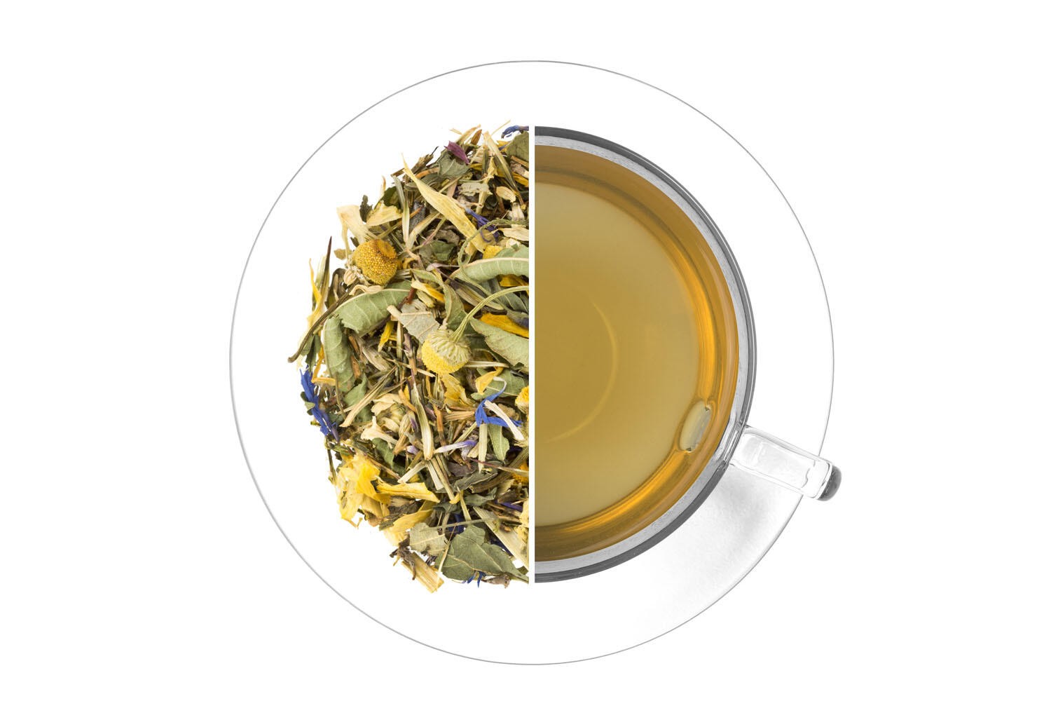 Zelený rooibos, třapatka nachová květ, heřmánek květ, oves bez lepku, máta peprná list, ostružiník list, tymián nať, levandule květ, verbena citronová/aloisie trojlistá list, měsíček květ, aroma, chrpa květ. Může obsahovat stopy skořápkových plodů.