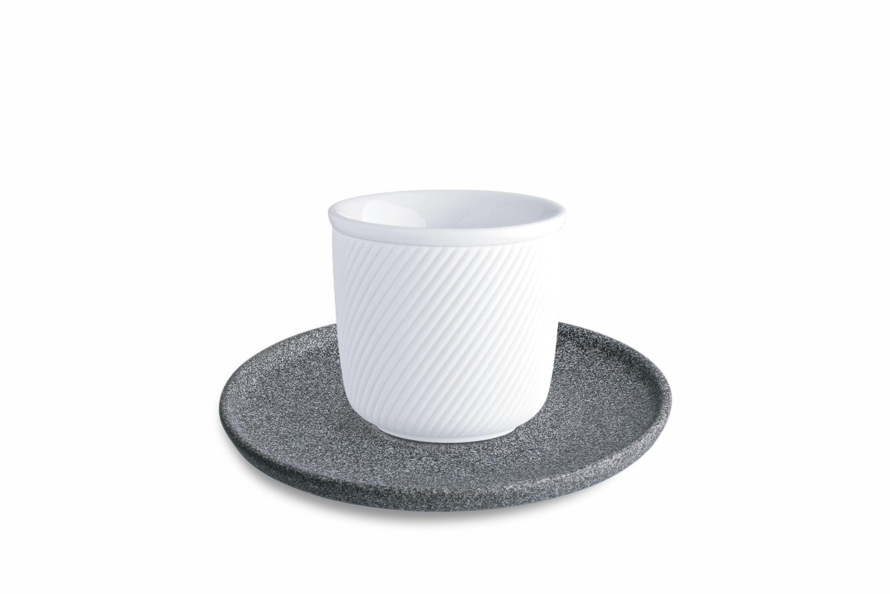 Elegantní dvoustěnný šálek z kvalitního porcelánu v čistě bílé barvě díky své konstrukci udrží kávu déle v ideální teplotě, zatímco zůstává příjemný na dotek. Skvěle se hodí pro servírování espressa a lze jej kombinovat s malým šedým podšálkem. Objem šálku je 80 ml.