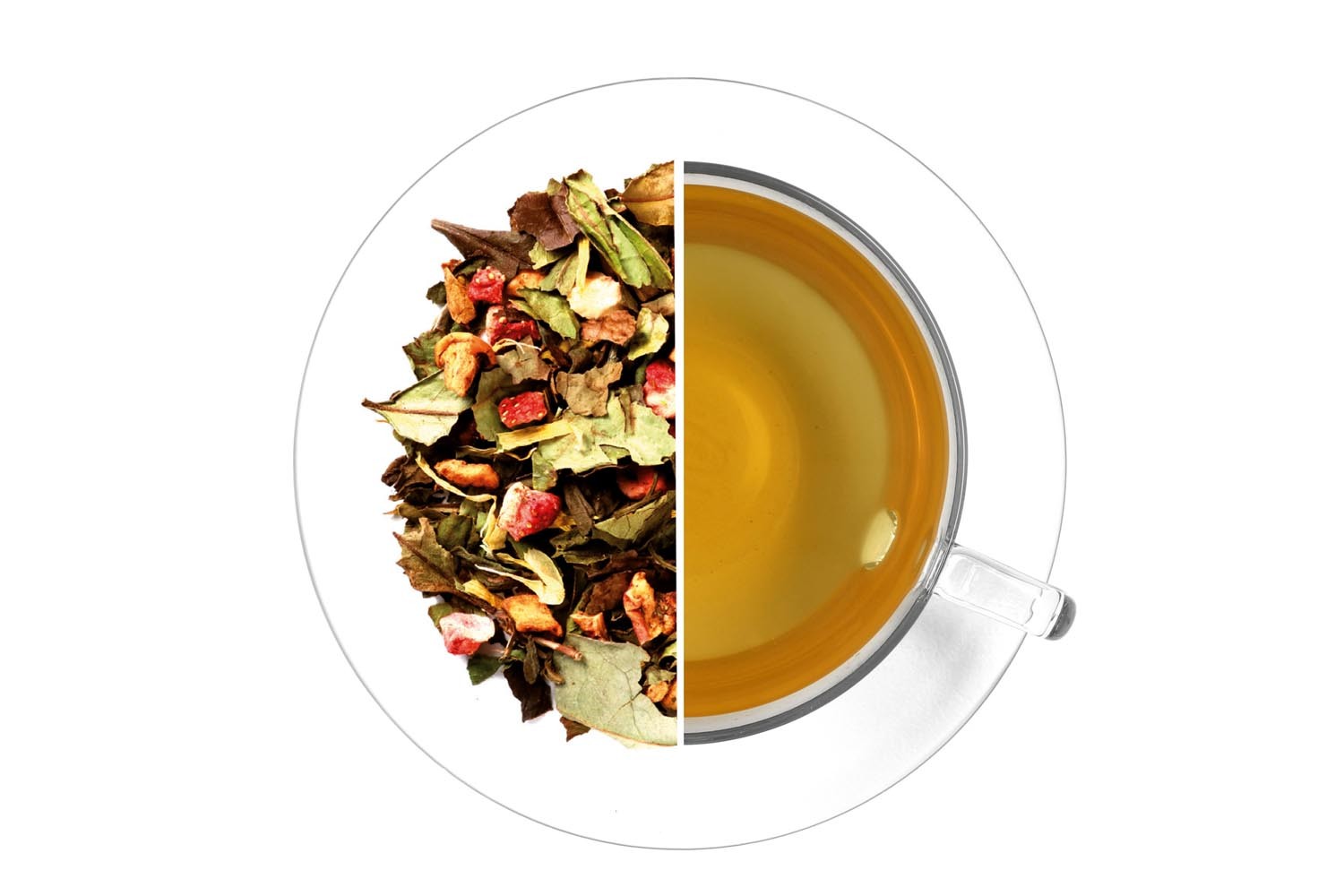 Pravý bílý čaj Shou Mei, jablka, jahody (3 %), aroma, měsíček květ, aroma s příchutí aloe (1,8 %). Může obsahovat stopy skořápkových plodů.