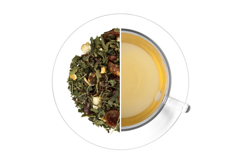 Kopřiva list (30 %), šípek, jablka, pomerančová kůra, skořice (6 %), hřebíček, přírodní aroma. Může obsahovat stopy skořápkových plodů.