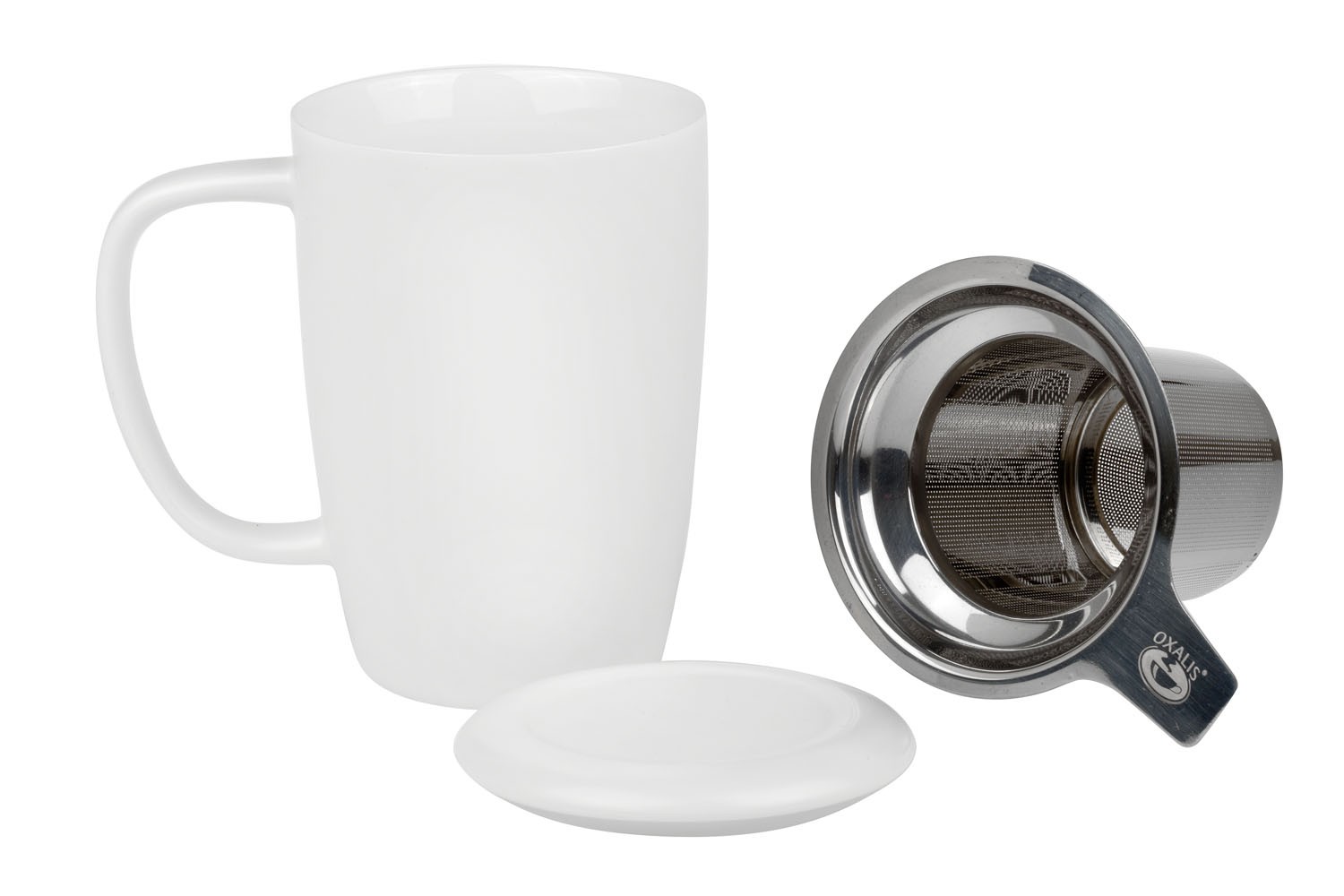 Porcelánový hrnek s nerezovým sítkem a pokličkou. Objem 0,44 l. Vhodný do myčky nádobí.