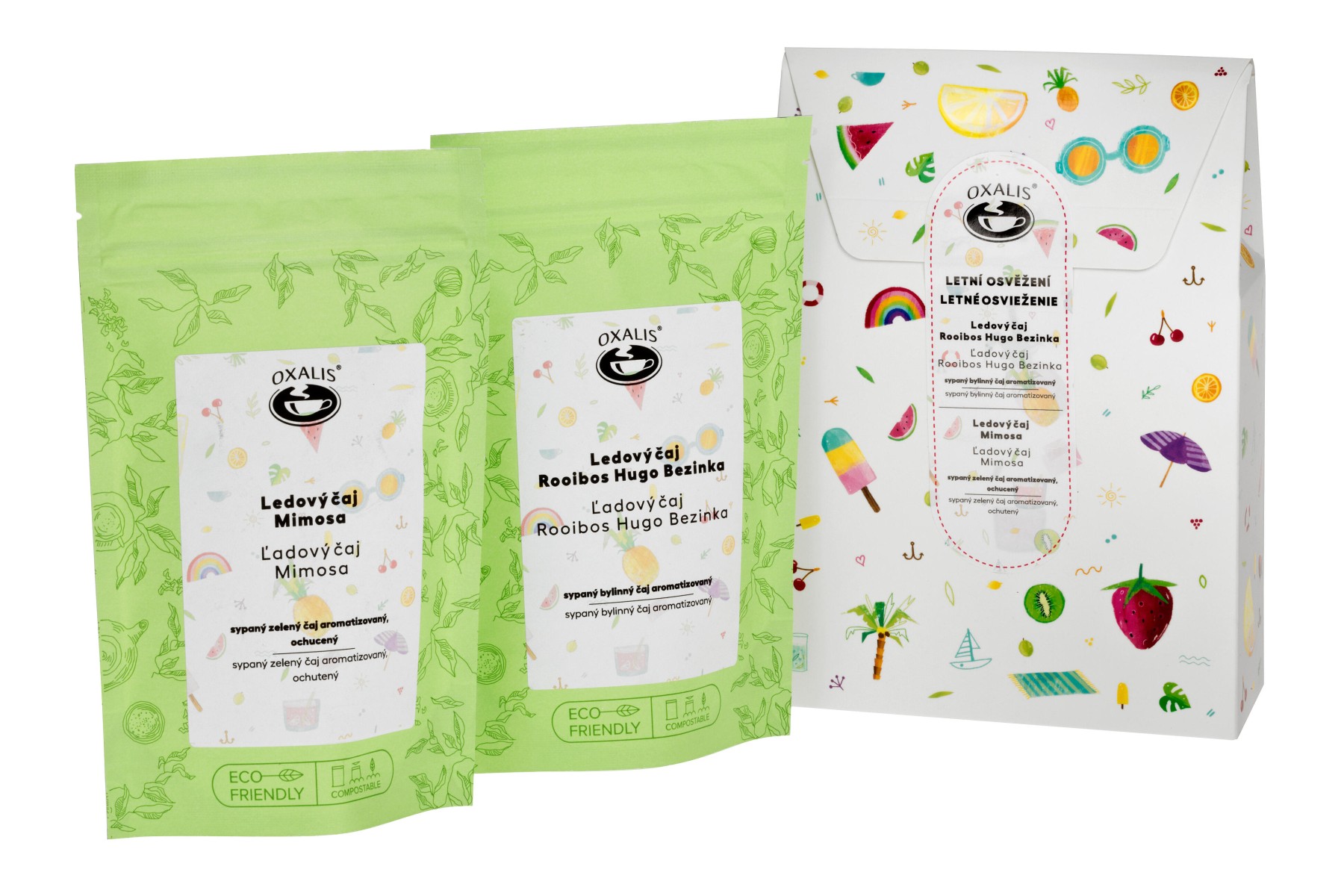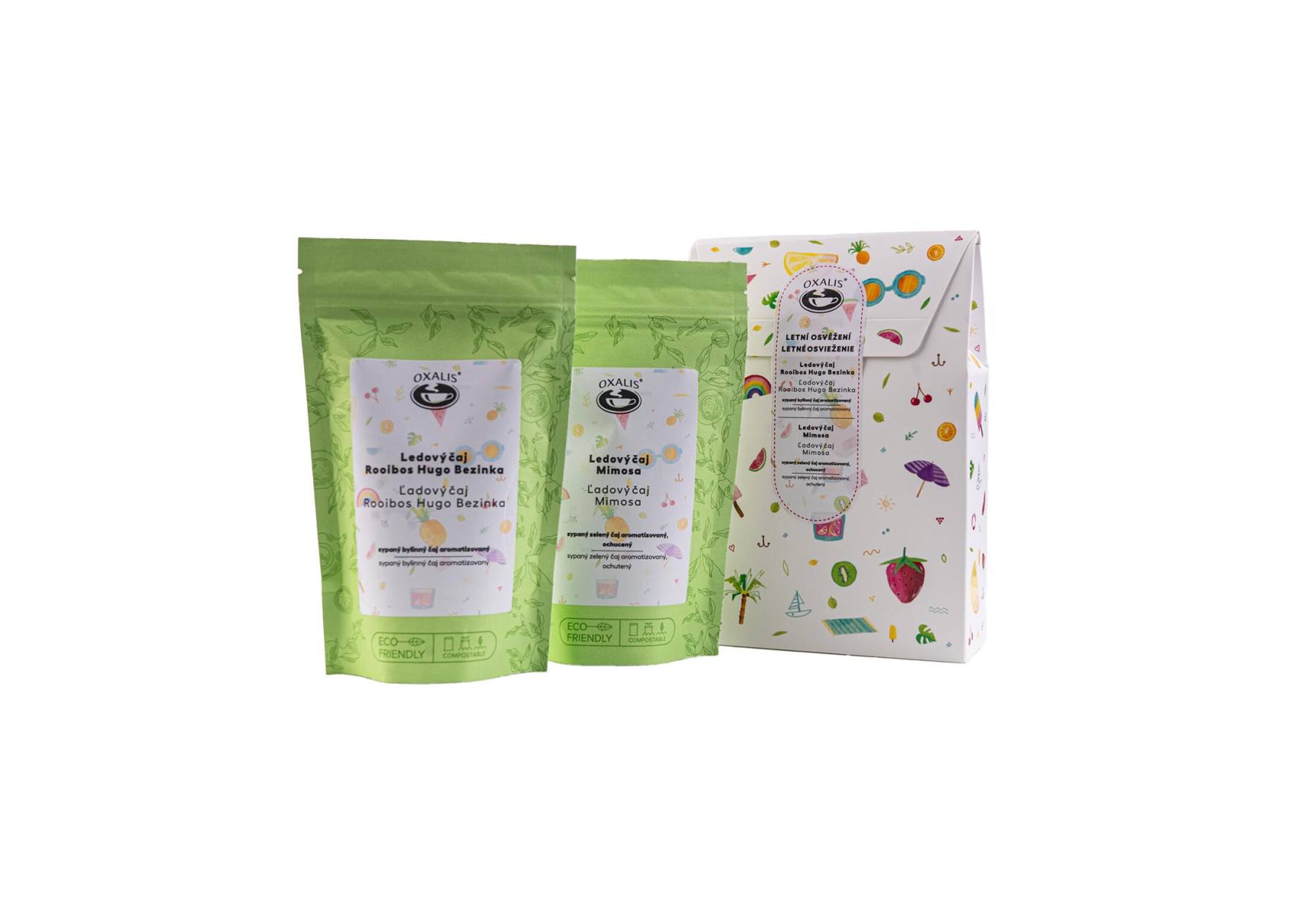 Dárkové balení pro milovníky ledových čajů.Hledáte ideální dárek na léto? Dárkové balení Letní osvěžení přináší chuťovou explozi, která zpříjemní horké dny. Uvnitř najdete dva osvěžující čaje určené k přípravě za studena:Ledový čaj Rooibos Hugo Bezinka - jemně nasládlý nápoj s nádechem bezu a máty, inspirovaný oblíbeným letním drinkem Hugo.Ledový čaj Mimosa - ovocný čaj s tóny pomeranče a šumivého vína, který v sobě nese chuť slunce a letní pohody.Složení: Ledový čaj Rooibos Hugo Bezinka 50 g - sypaný bylinný čaj aromatizovaný, Ledový čaj Mimosa 50 g - sypaný zelený čaj aromatizovaný, ochucený, kartonový obal.