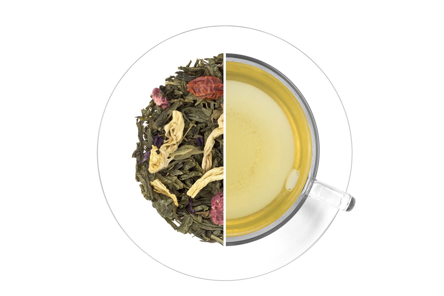 Zelený čaj Sencha, šípek, máta peprná (min. 5,1 %), aroma, maliny (min. 3,3 %), slunečnice, sléz. Může obsahovat stopy ořechů.
