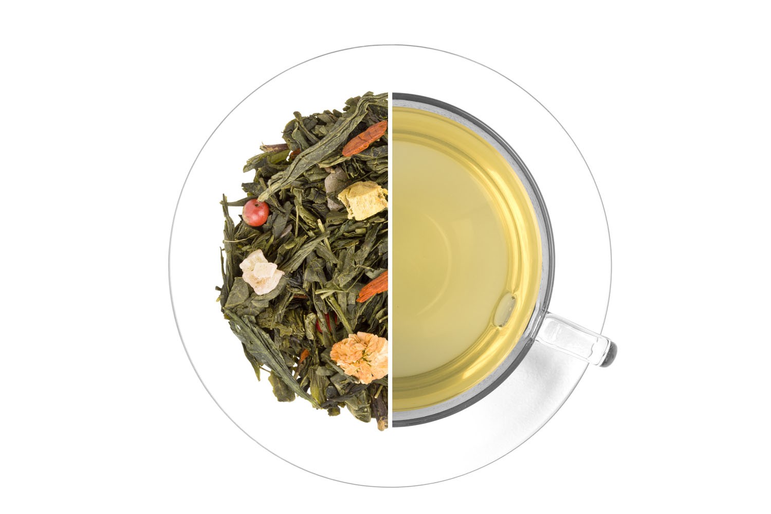 Pravý zelený čaj Sencha s exotickou chutí tropického ovoce a jemnými kořeněnými tóny. V každém šálku ucítíte harmonii ananasu, papáji a santalového dřeva s lehkým závěrem lékořice a červeného pepře. Ideální pro chvíle klidu a relaxace.