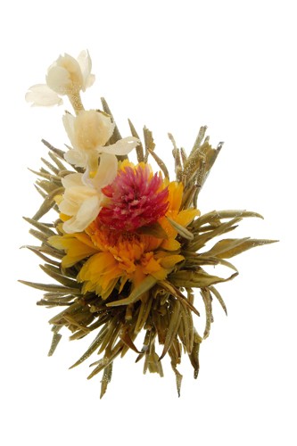 Po zalití se lístky rozvinou a odhalí skryté květy měsíčku propojené s laskavcovkou a jasmínem. Lehká vůně květin a vydatný čajový nálev.