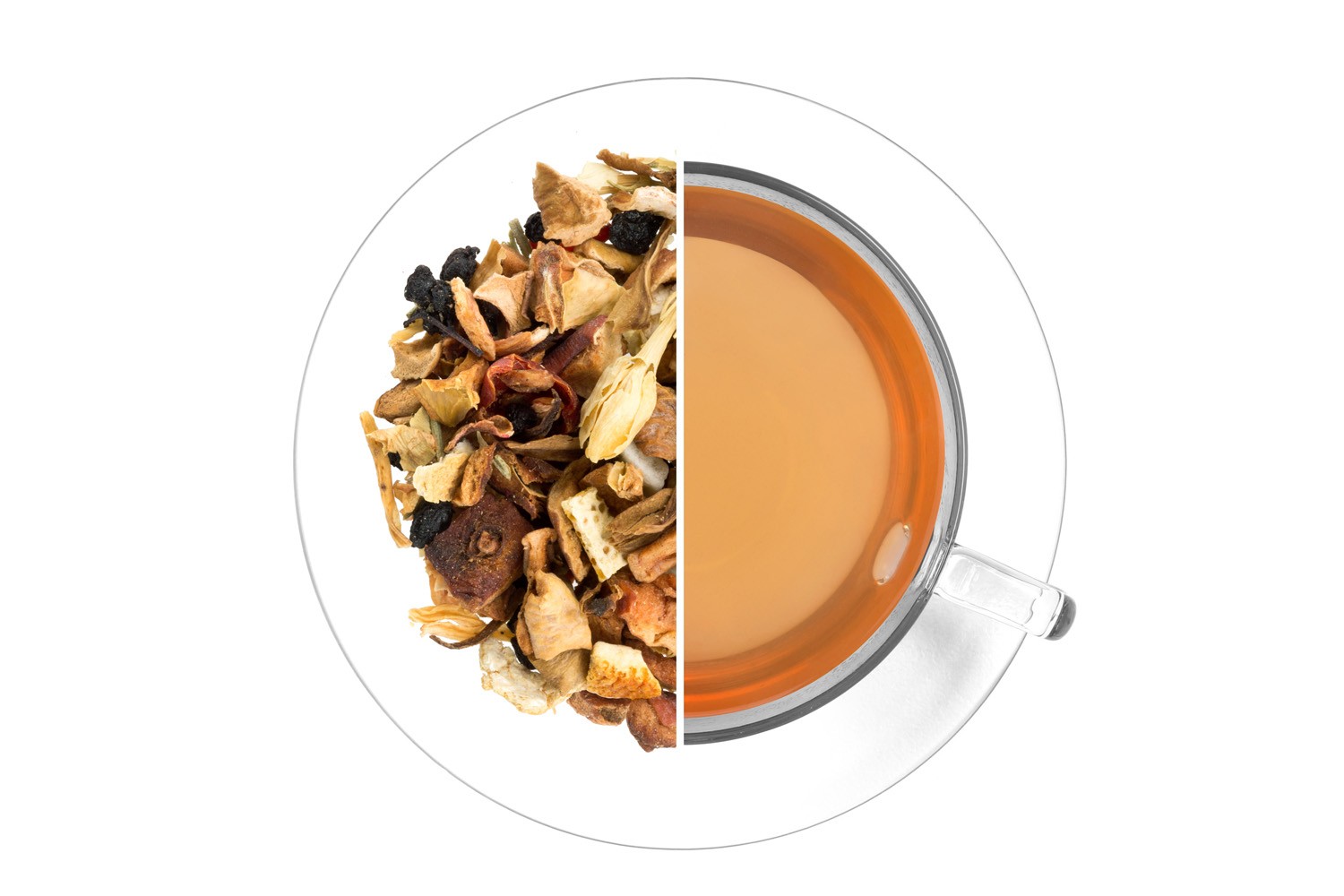 Jablka, bílý ibišek (5,8%), mango (5,8 %)(mango, cukr, regulátor kyselosti kyselina citrónová), pomerančová kůra, šípek, červená řepa, aroma, květy jasmínu, rozmarýn, květy sléze. Může obsahovat stopy skořápkových plodů.