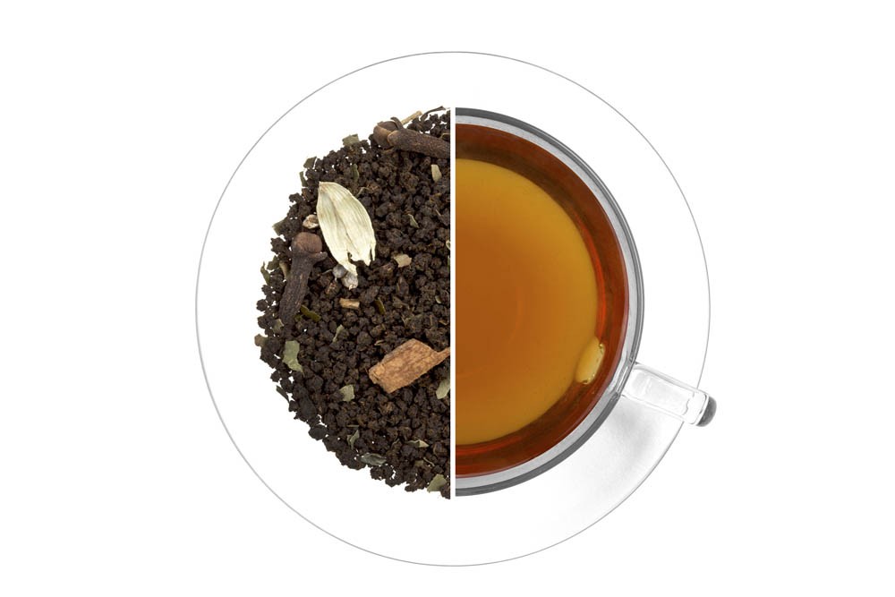 Pravý černý čaj, kardamon, skořice, hřebíček. Může obsahovat stopy ořechů.