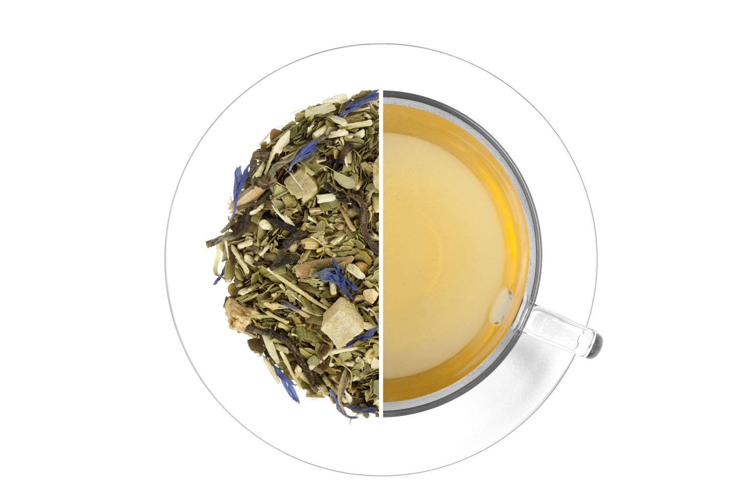 Mate (62,9%), ananas (ananas, cukr, regulátor kyselosti kyselina citrónová), pravý zelený čaj Pu-Erh, Paulinie nápojná plod (Guarana), aroma, dřevina Muira Puama, ženšen, chrpa. Může obsahovat stopy skořápkových plodů. Obsahuje kofein.