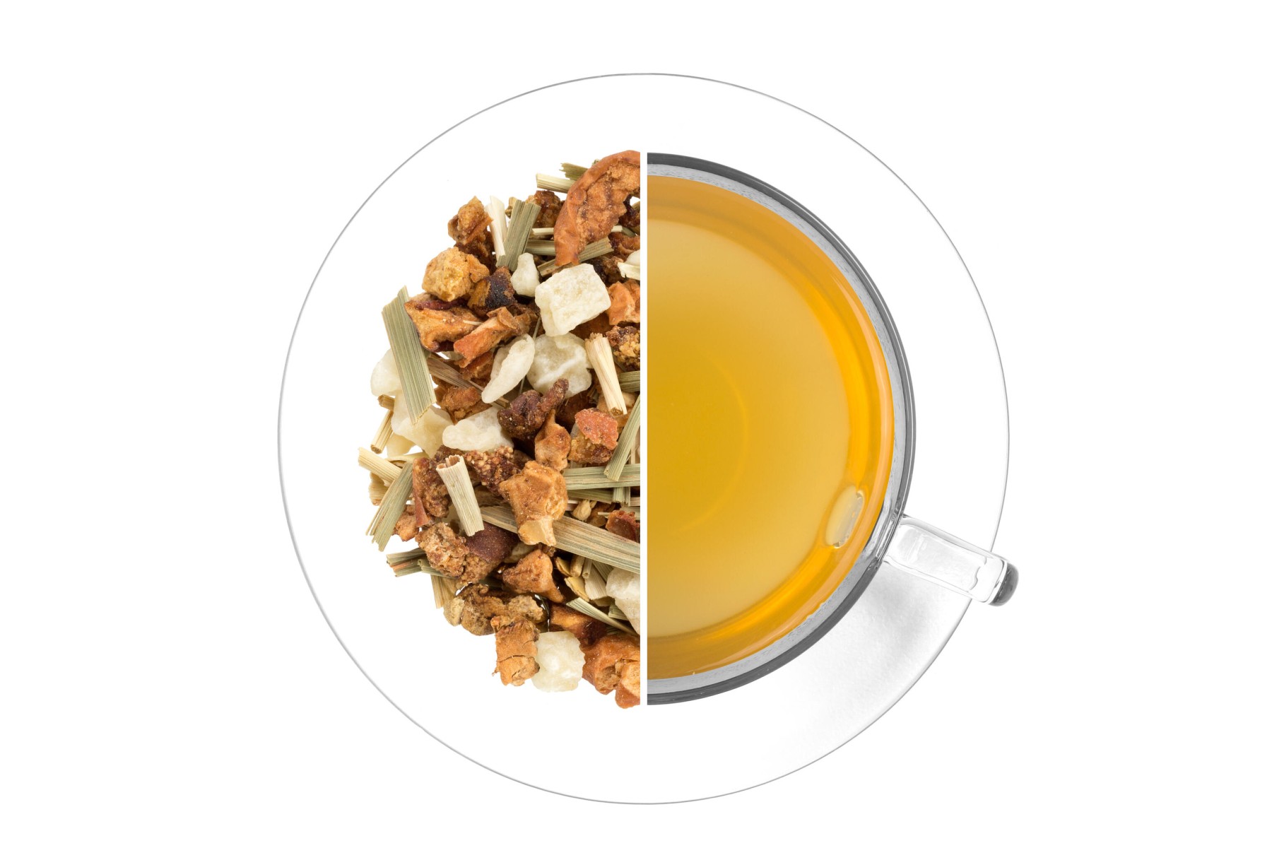 Hruška, jablko, zázvor 12,9 %, meloun (meloun, cukr, regulátor kyselosti kyselina citrónová), citronová tráva, ananas (ananas, cukr, regulátor kyselosti kyselina citrónová), aroma, aroma s příchutí medu 0,5 %. Může obsahovat stopy skořápkových plodů.