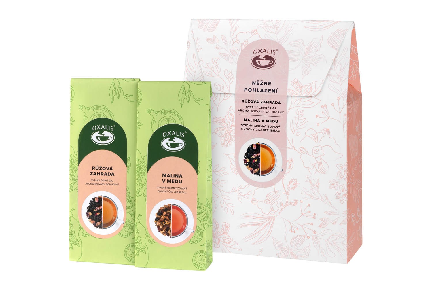 Hledáte milý dárek, který zahřeje u srdce? Tato něžně růžová taštička potěší všechny milovníky čajů – uvnitř najdete aromatizovaný černý čaj Růžová zahrada (50 g) a ovocný čaj Malina v medu (50 g). Dva lahodné momenty pohody v krásném balení, které potěší smysly i duši.