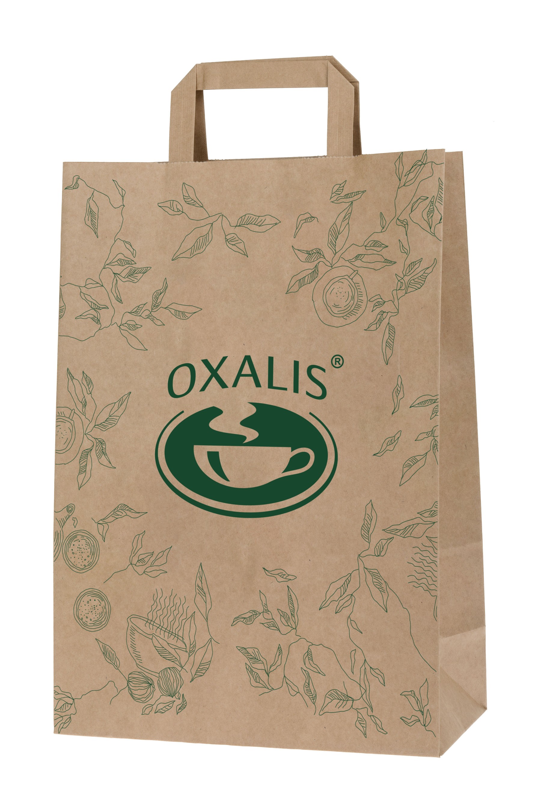Přírodní papírová taška na malý nákup s logem OXALIS. Rozměr 220 x 100 x 310 mm.