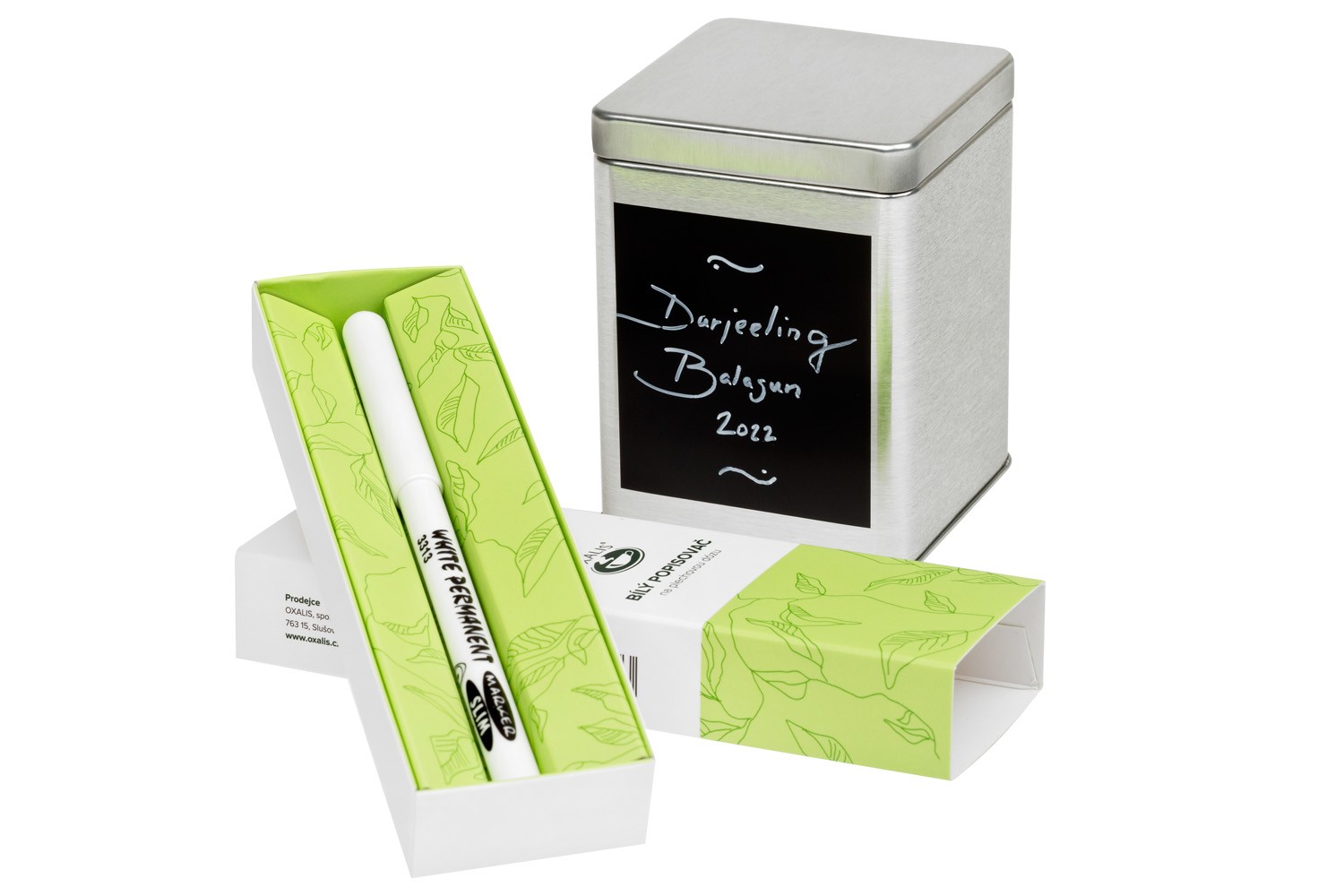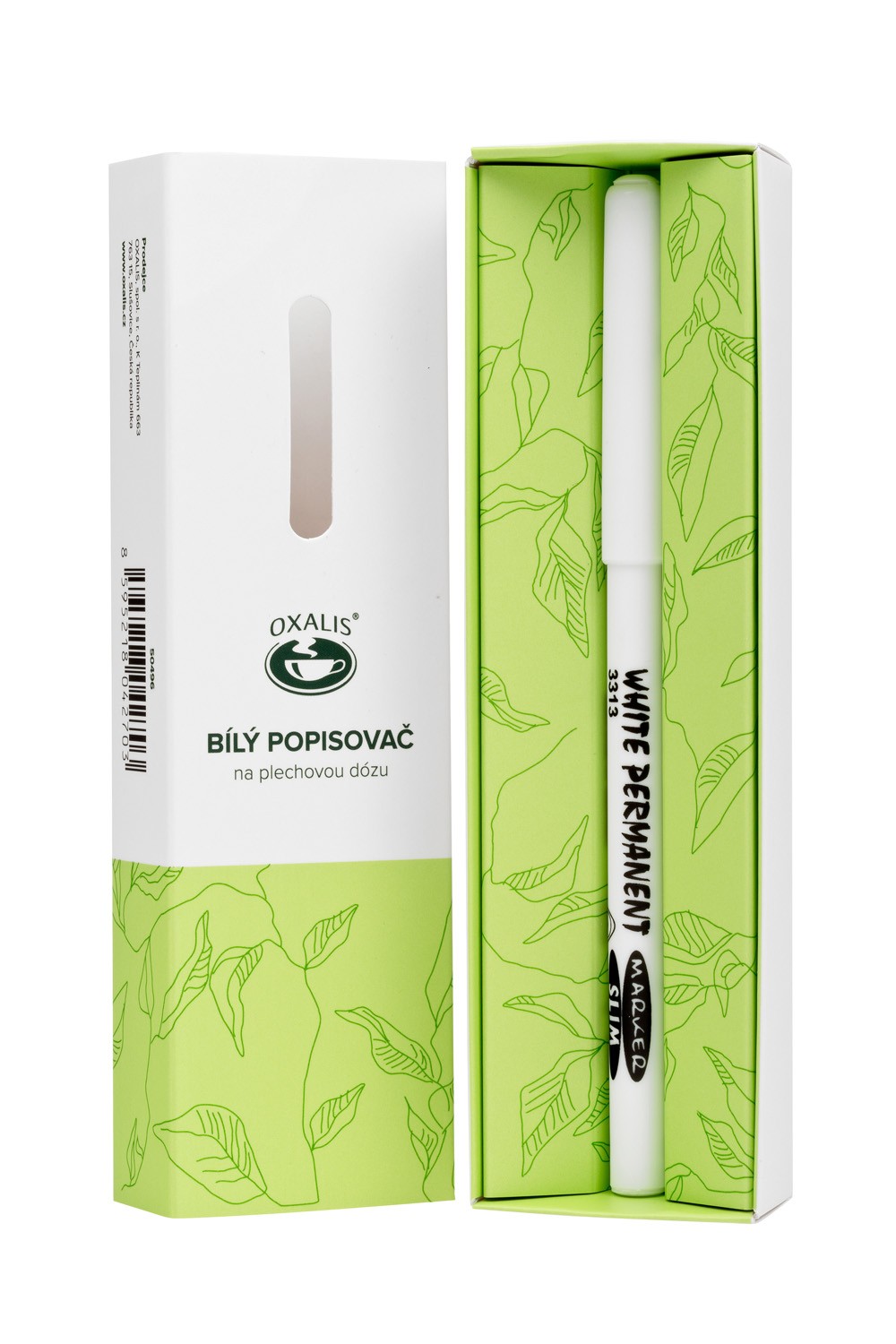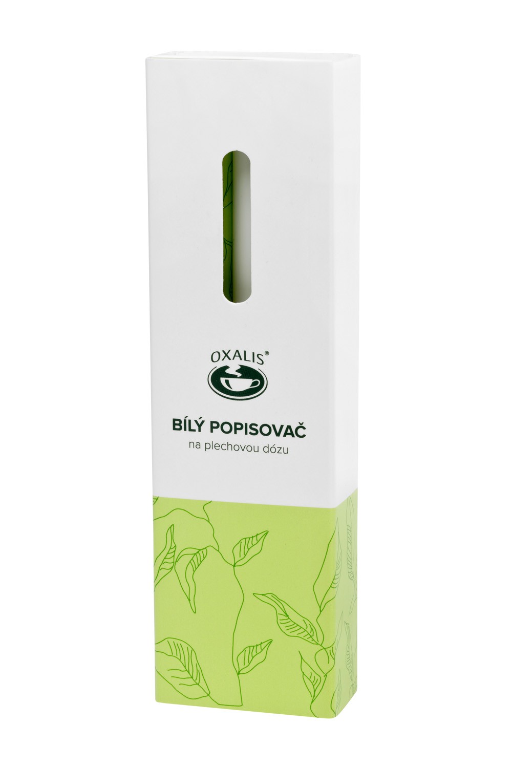 Bílý popisovač určený pro popisování plechové dózy č. 40419. Nápis lze snadno smazat vlhkým hadříkem nebo houbičkou.