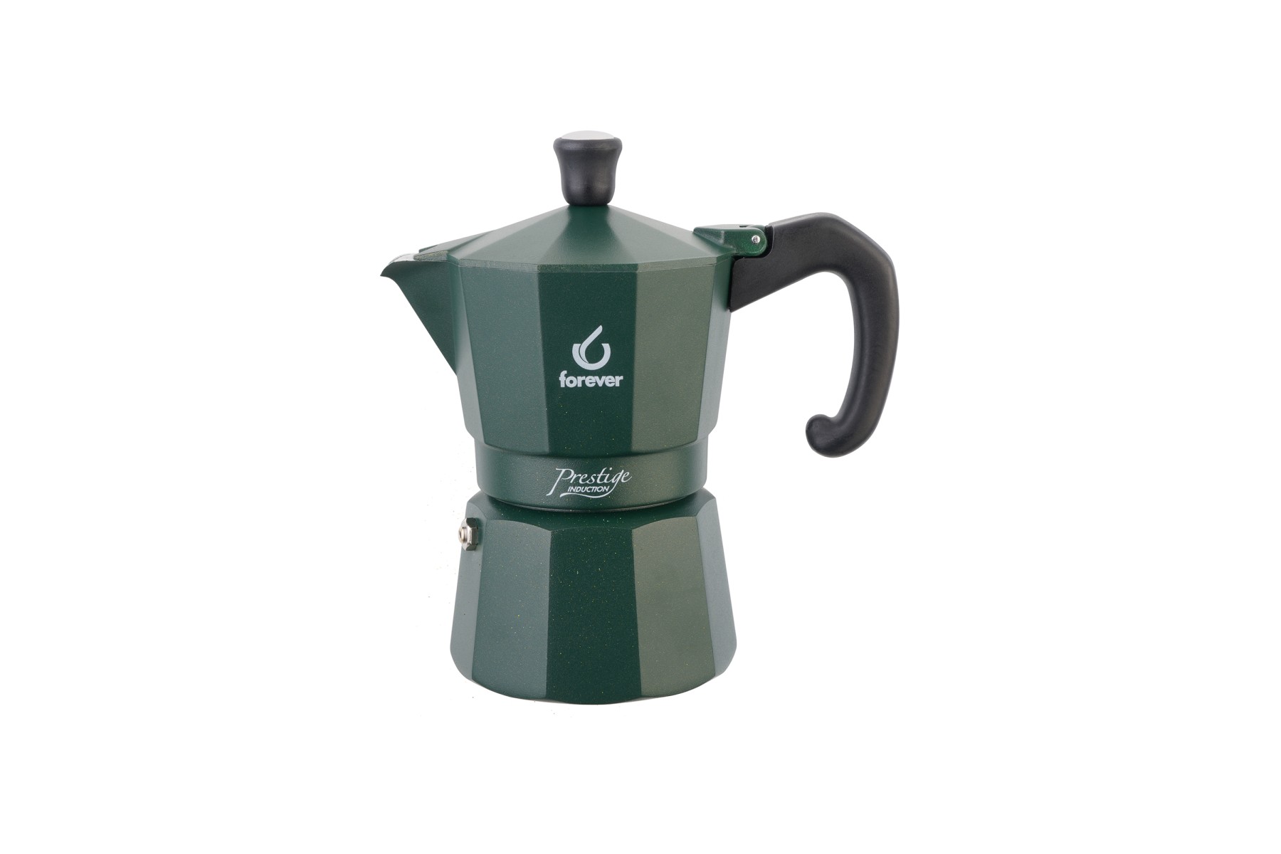 Dopřejte si lahodnou kávu v italském stylu s moka konvičkou Prestige, tentokrát v zelené barvě. Vyrobena z kvalitních materiálů, vhodná pro přípravu až 6 šálků kávy. Snadno použitelná na elektrických, sklokeramických, indukčních i plynových varných deskách.