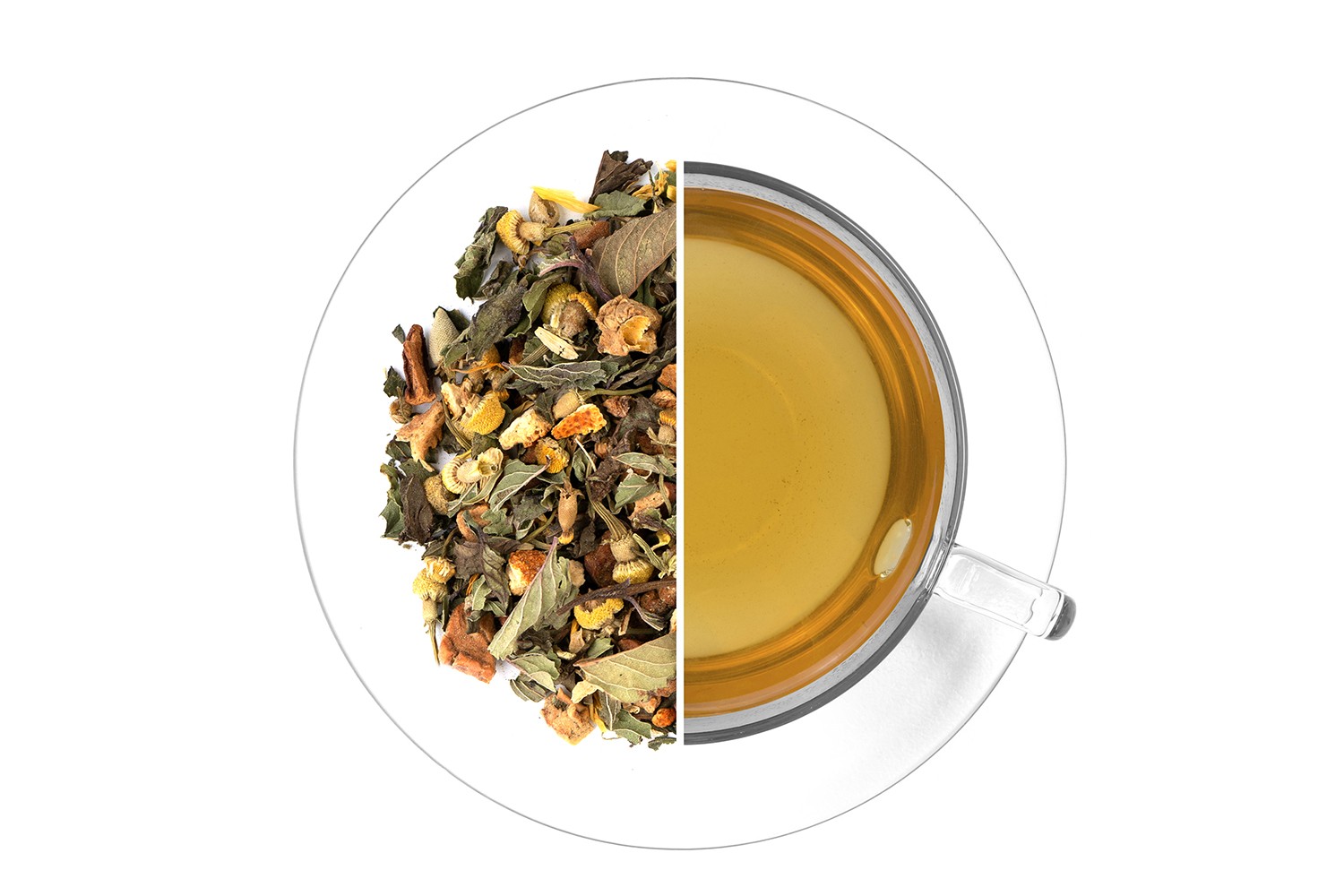 Jablka, máta list, kopřiva list, heřmánek květ, pomerančová kůra, měsíček květ.