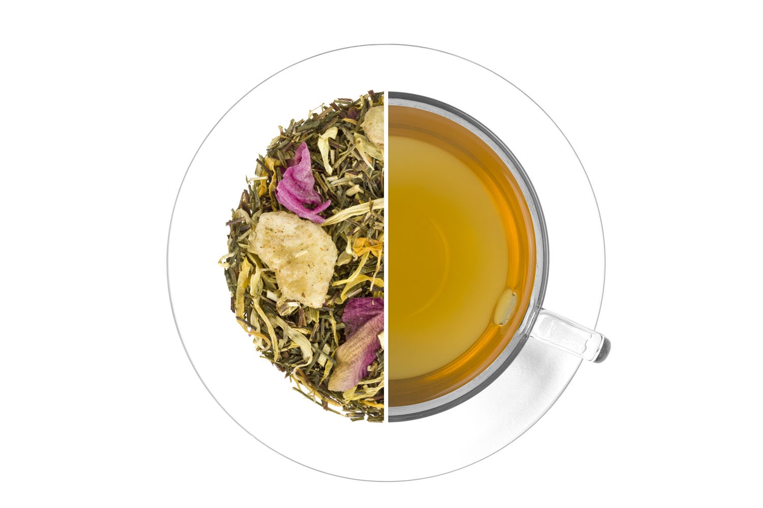 Tropická harmonie zeleného rooibosu s lahodným banánem, šťavnatým melounem a exotickou maracujou. Květinové tóny měsíčku a pivoňky dodávají čaji jemnost a eleganci. Ideální pro chvíle klidu i osvěžení.
