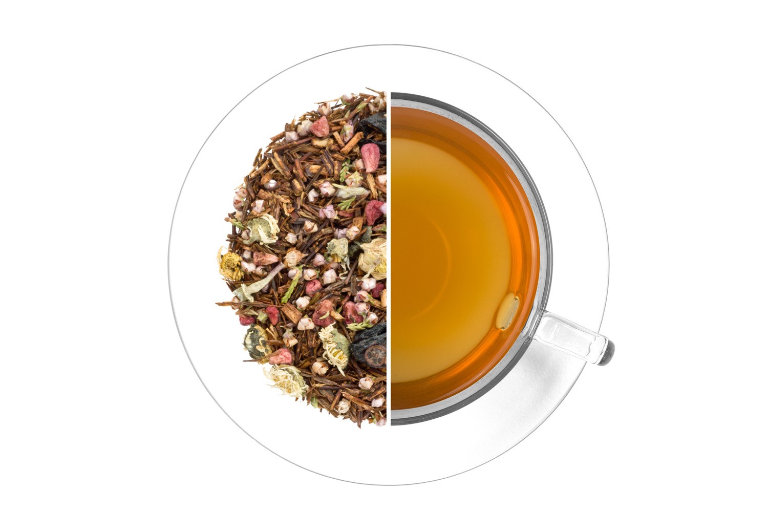 Rooibos červený (74,4 %), černý rybíz, květy vřesu a sedmikrásky, přírodní aroma, maliny, aroma. Může obsahovat stopy skořápkových plodů.