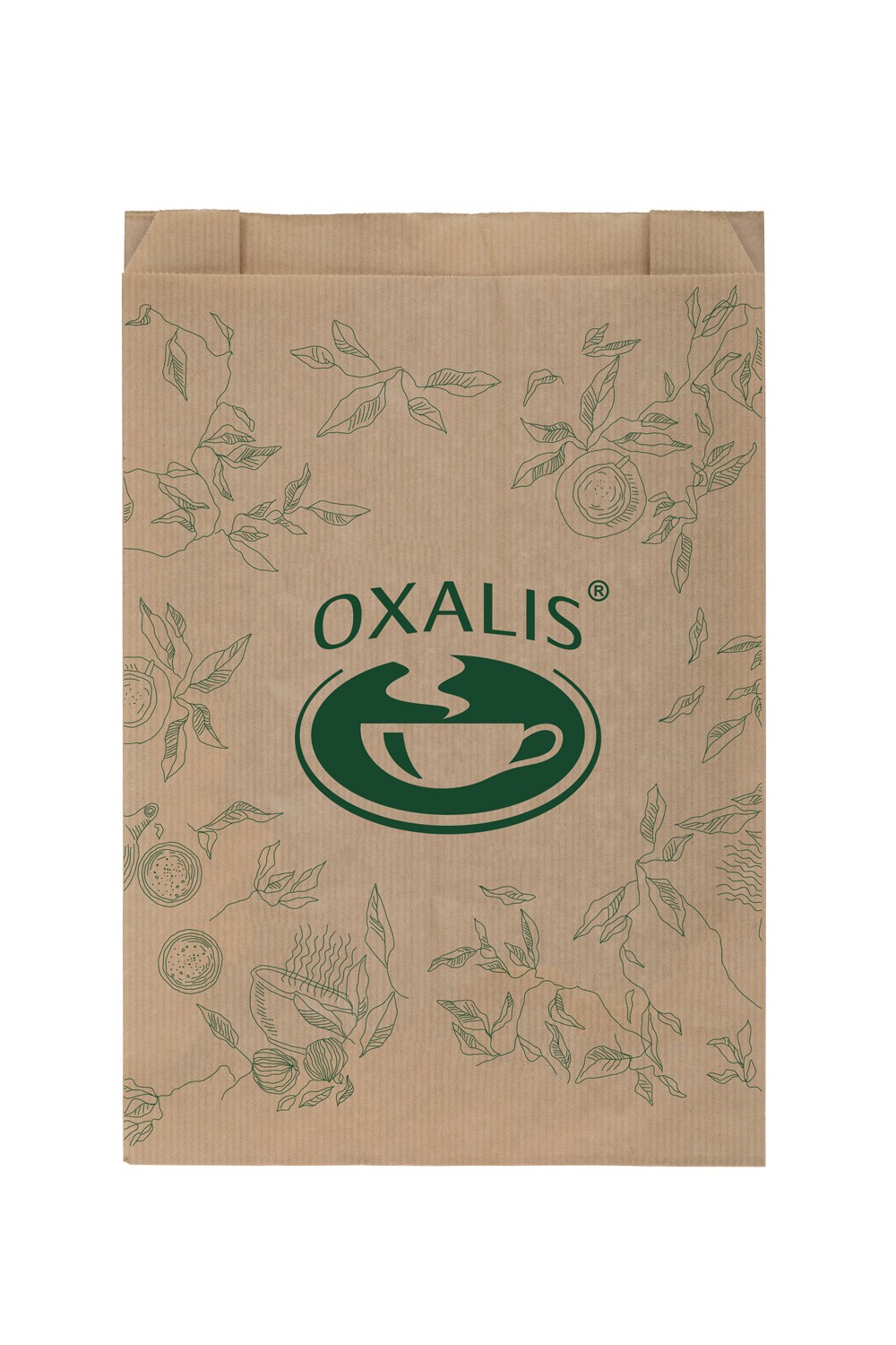 Přírodní papírový sáček s logem OXALIS, vhodný pro balení 500 g čaje či kávy. Sáčky jsou k dispozici po násobcích 10 kusů.