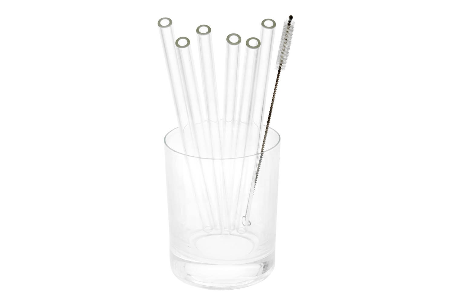 Sada skleněných brček o délce 20 cm a průměru 8 mm je ideální pro opakované použití. V balení najdete 6 kusů brček a praktický kartáček na jejich snadné čištění. Ekologická a elegantní alternativa k plastovým brčkům.