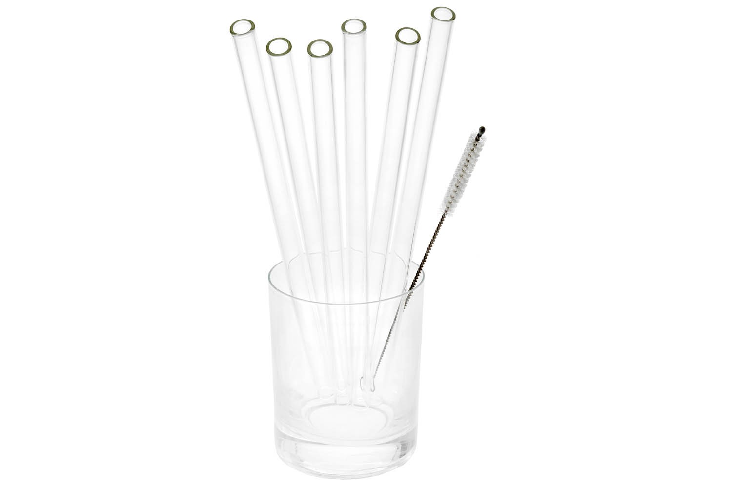 Sada skleněných brček o délce 25 cm a průměru 10 mm je ideální pro opakované použití. V balení najdete 6 kusů brček a praktický kartáček na jejich snadné čištění. Ekologická a elegantní alternativa k plastovým brčkům.