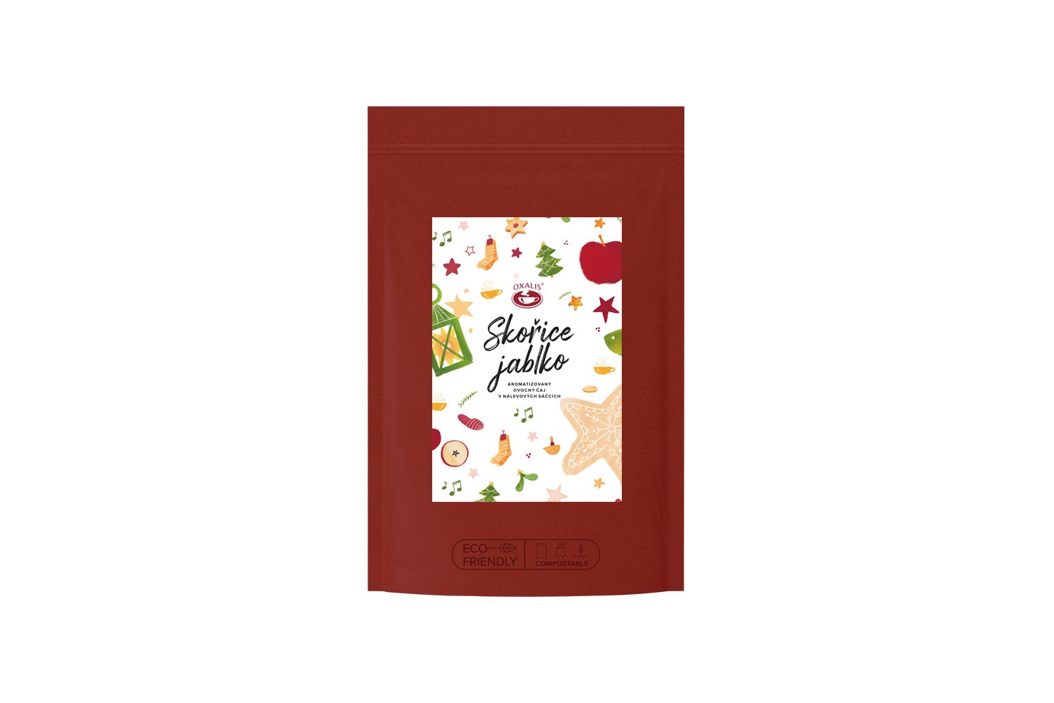 Kusy jablek (33,5 %), ibišek, šípky, kousky pomerančové kůry, skořice (2,4 %), aroma. 20 nálevových sáčků pyramidového tvaru, 1 ks 80 g