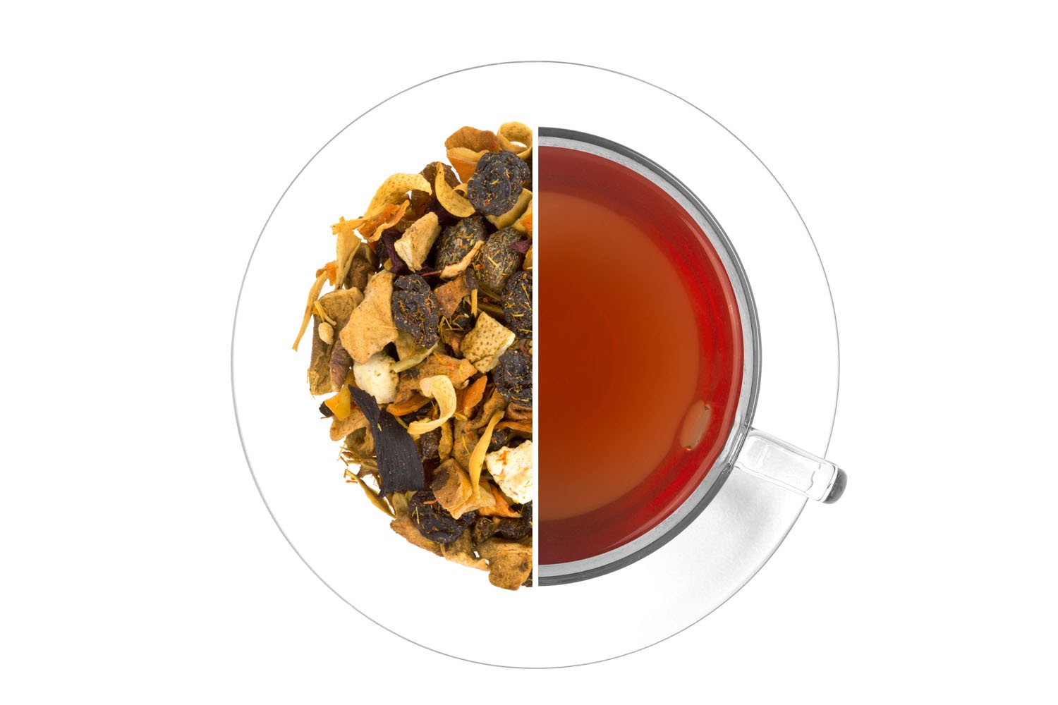 Jablka, rozinky (rozinky, slunečnicový olej), mrkev, meruňky (meruňky, rýžová mouka), rakytník plod, červená řepa, pomerančová kůra (5,5 %), květy pomerančovníku (2,7 %), květy světlice barvířské, přírodní aroma. Může obsahovat stopy skořápkových plodů.