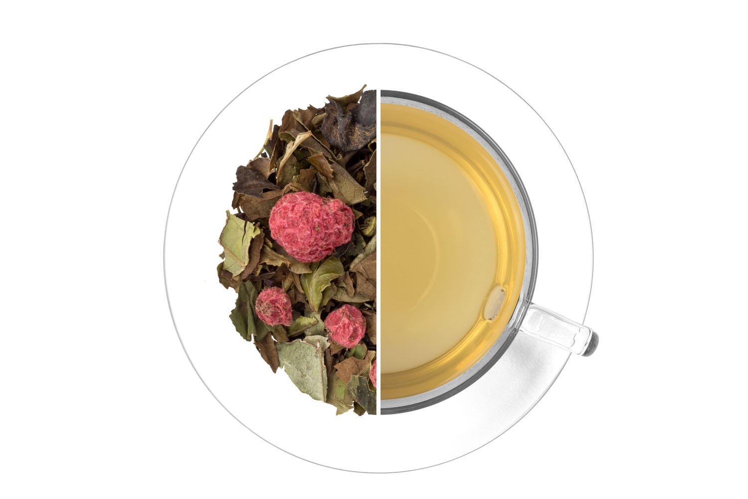 Pravý bílý čaj Shou Mei, pravý zelený čaj Ceylon Sencha, rozinky (rozinky, slunečnicový olej), červený rybíz, aroma, maliny (2,4 %). Může obsahovat stopy skořápkových plodů.