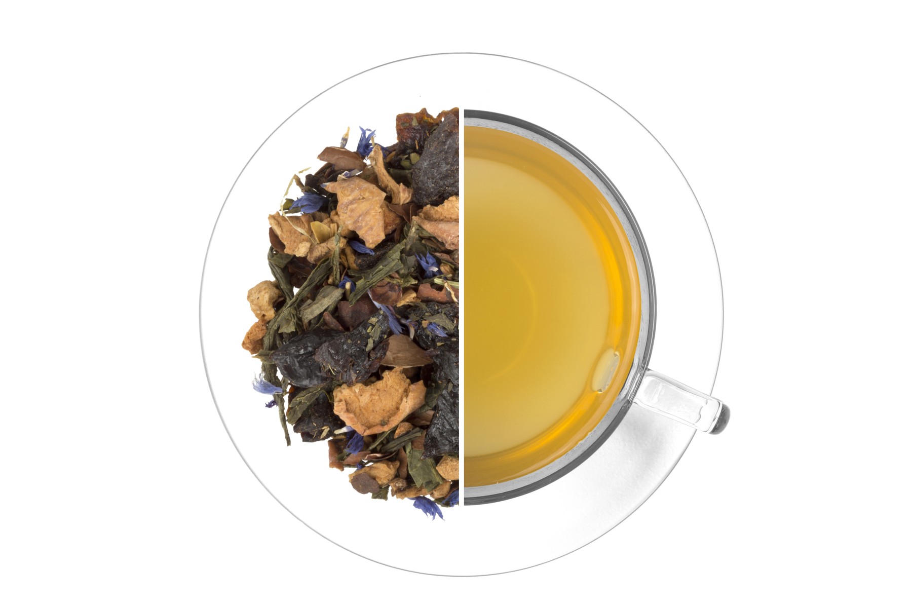 Švestky (švestky, slunečnicový olej) (37,4 %), jablka, pravý zelený čaj Sencha, kakaové slupky, skořice, květy chrpy. Obsahuje kofein. Může obsahovat stopy skořápkových plodů.