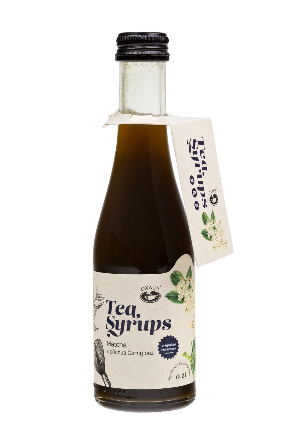 sirup se zeleným čajem Matcha a příchutí černého bezu