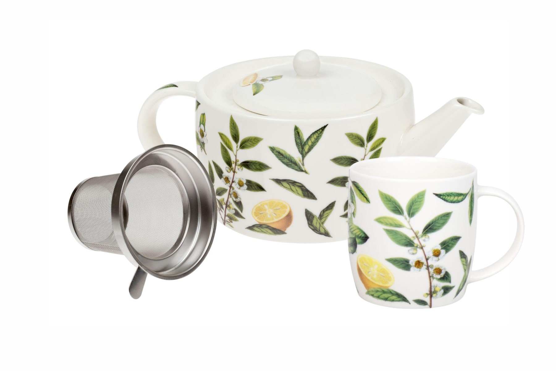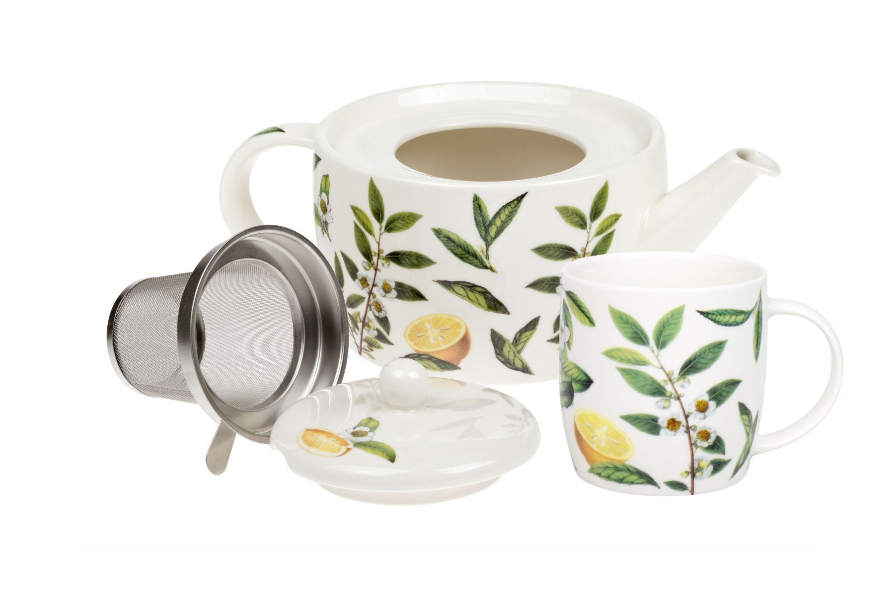 Elegantní porcelánový set z kvalitního fine bone china zahrnuje konvici a čtyři hrnky, a je tak ideální pro pohodovou přípravu a servírování čaje pro čtyři osoby. Jemný design v kombinaci s prvotřídním materiálem zaručuje příjemný zážitek z každého šálku. Set obsahuje konvici o objemu 1,4 l a čtyři hrnky, každý s objemem 350 ml.