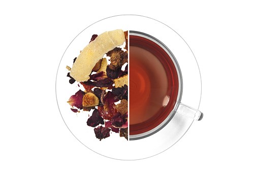 Jablka, ibišek, šípek, pomerančová kůra, rozinky (rozinky, slunečnicový olej), datle (datle, rýžová mouka), meruňky (meruňky, rýžová mouka), švestky (švestky, slunečnicový olej), fíky (fíky, rýžová mouka), kokos, lékořice kořen, kardamom plod, aroma, mandle, poupata a květy růží, vanilka. Může obsahovat stopy skořápkových plodů. Obsahuje lékořici - osoby s vysokým krevním tlakem by se měly vyvarovat nadměrné spotřeby.