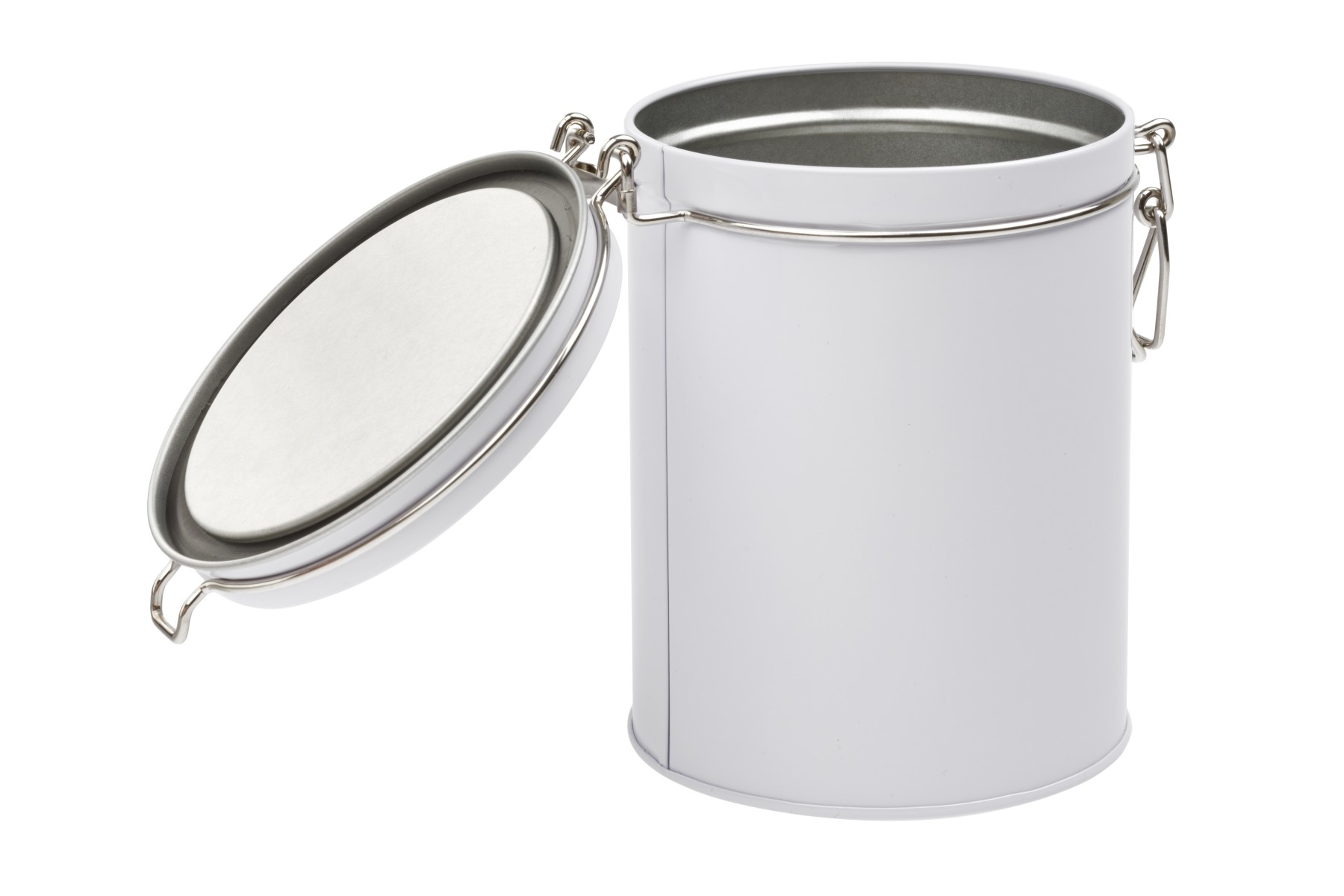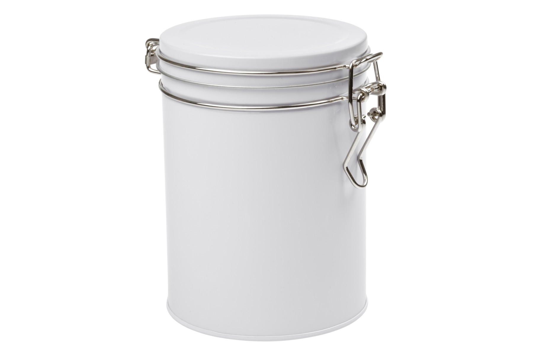 Jednoduchá, ale praktická plechová dóza na úschovu čaje v jednoduchém - bílém provedení. Objem 250 g, rozměry Ř9,5 x 13 cm.