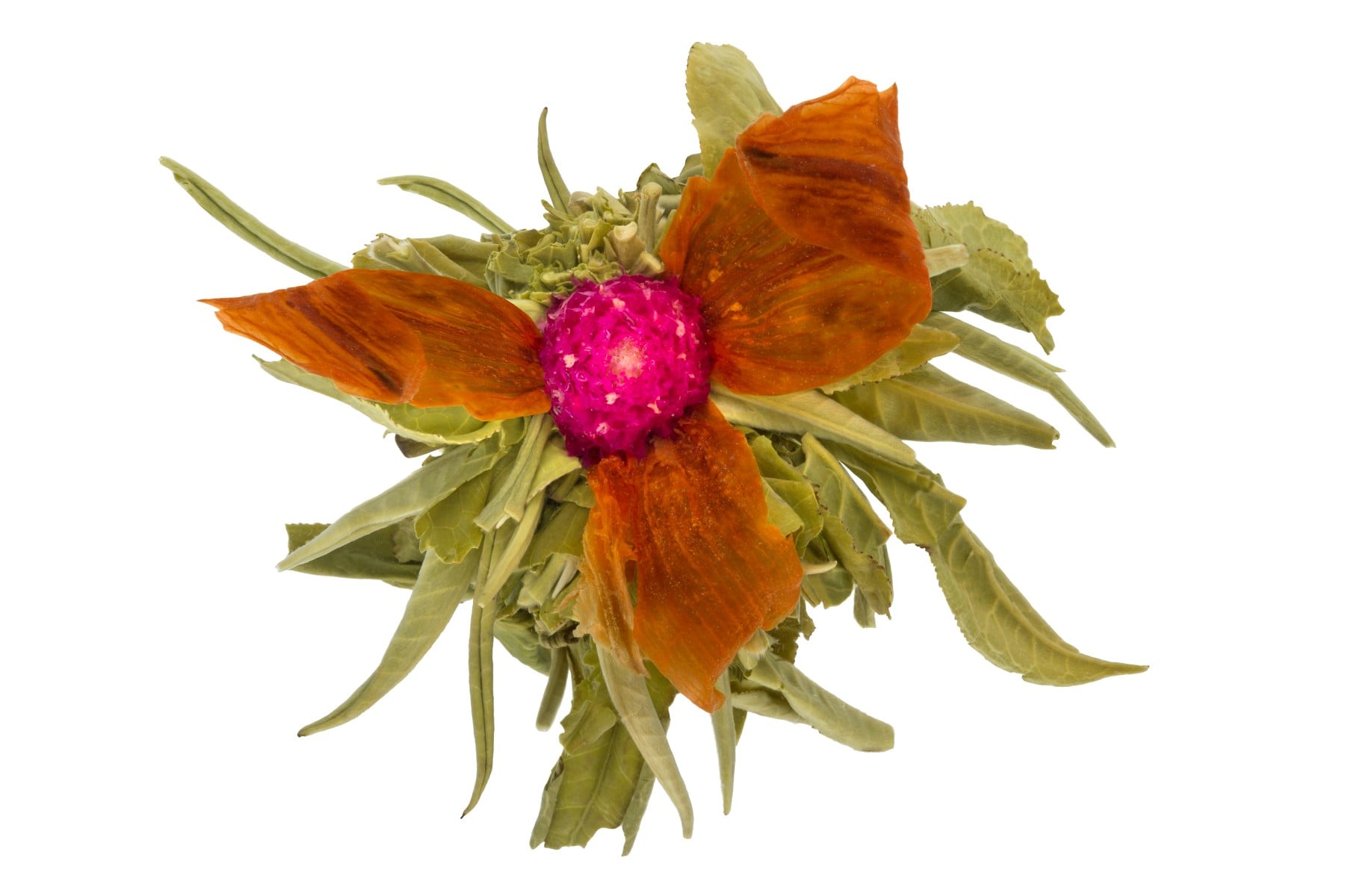 Po zalití se lístky rozevřou a odhalí skryté květy růžového laskavce a lilie. Nálev svůdné chuti, plný jiskrné svěžesti.